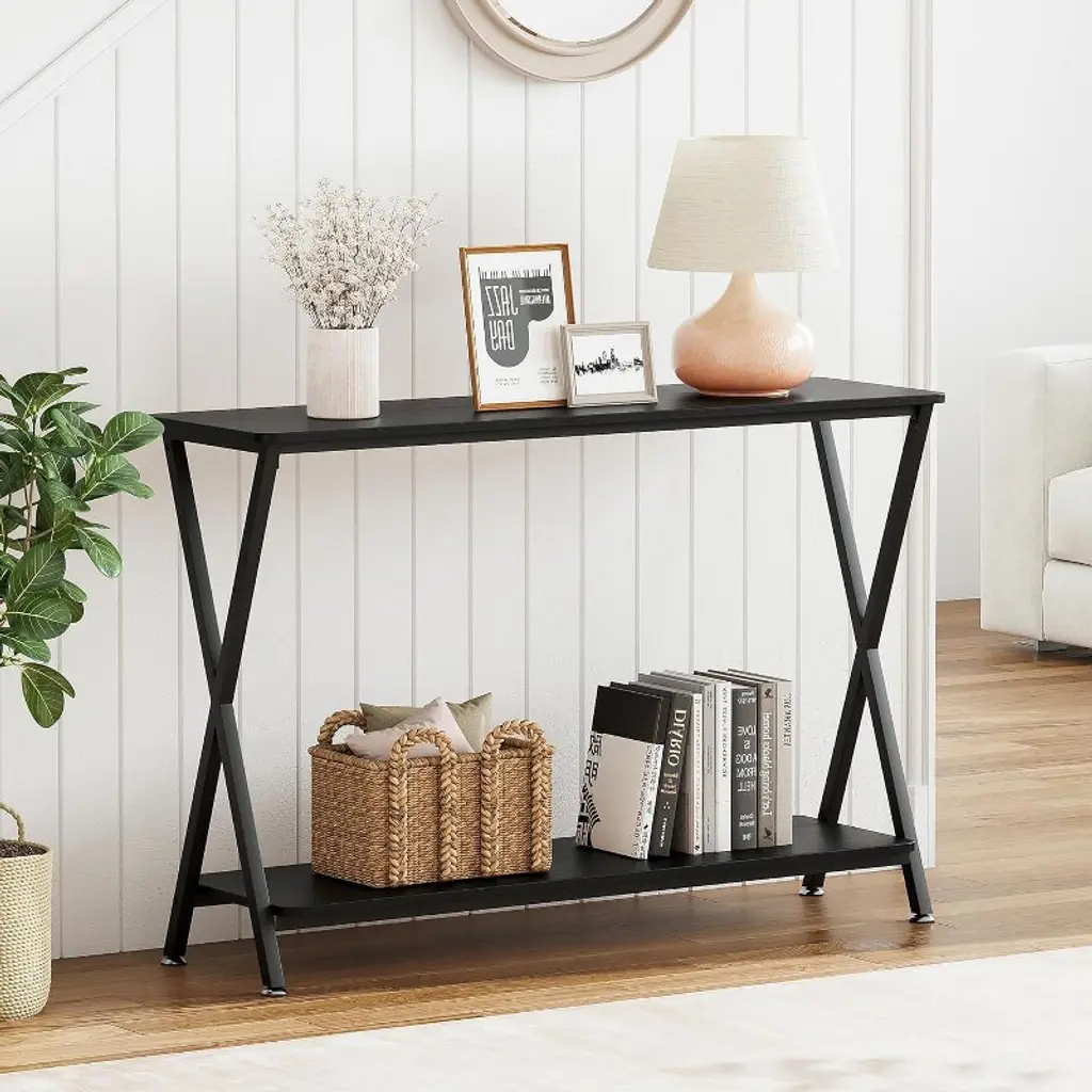 Couch Table Behind Sofa,2-tier Industrial Display Table With Shelves, Foyer Tables For Entryway, Foyer, Living Room, Bed Room