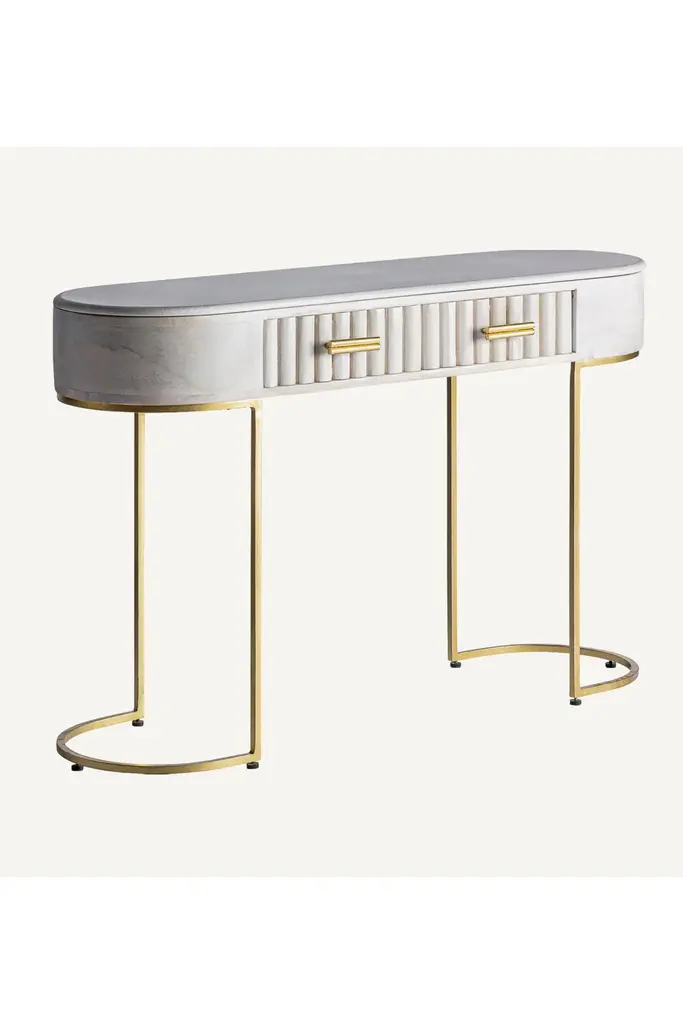 The Glees Console Table by Vical Home is the essence of elegance. Made from mango wood with iron and brass details, its cream and gold finish is simply stunning. Glees is perfect for enhancing your entrance or living room. If you are looking for a piece of furniture that combines beauty and functionality, the elegant Glees console table is the perfect choice.