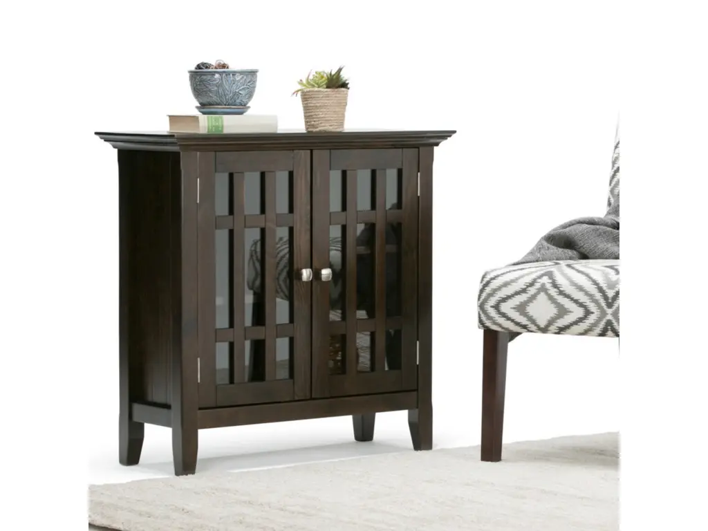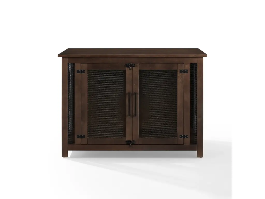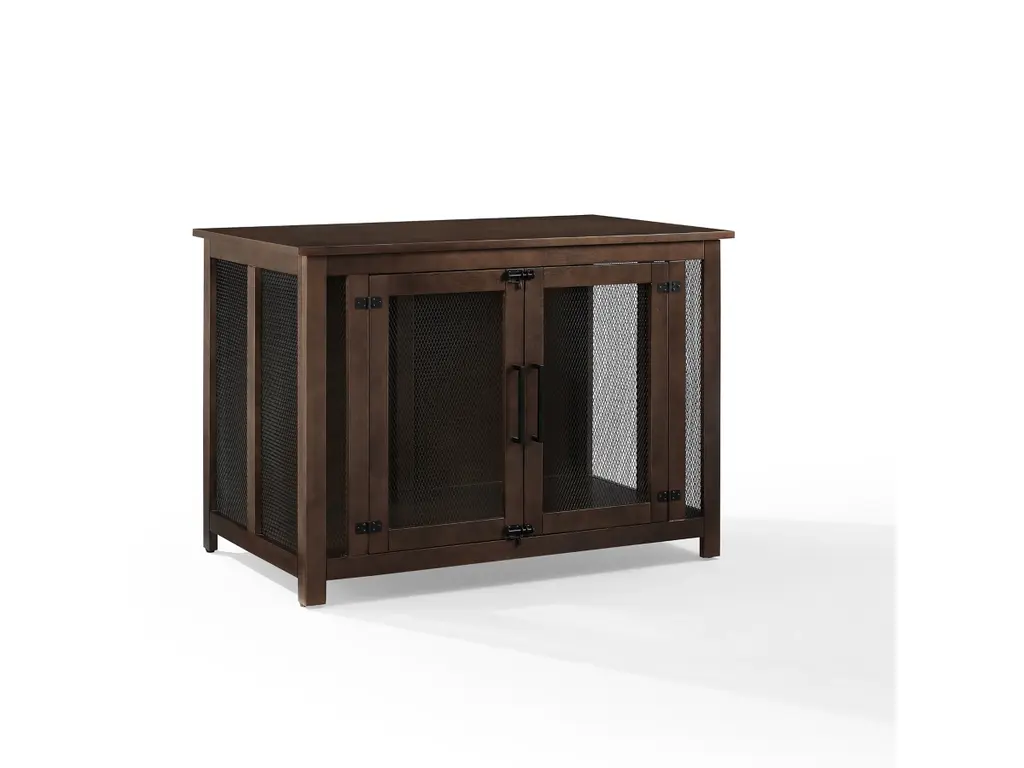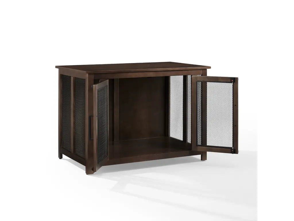 The Dane Credenza Dog Crate gives your precious pooch a cozy hideaway that doubles as a stylish console table. Ideal for small to medium crate-trained pets, this lovely dog kennel features durable steel mesh for ventilation and visibility. Double doors on the console make it easy to get your furry friend in and out. Though not recommended for escape artists or ardent chewers, this dog crate offers a secure and beautiful alternative to a traditional metal dog cage.