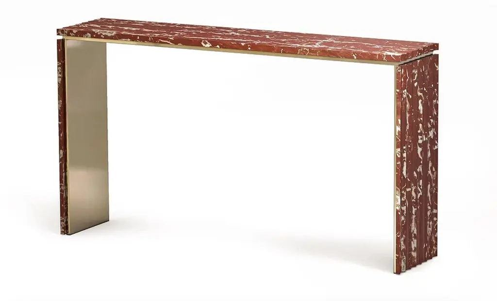 Curves marble console by Marmi SerafiniMaterials: marble and brassDimensions: D 40 x W 140 x H 90 cmOther marbles available.Console with soft and sophisticated lines embellished by the undulating side surfaces leaving the horizontal part almost irrelevant.Marmi Serafini is located in a small city named Chiampo, internationally well known for its marble production.It's origins stem from Mr. Bruno Fortunato's passion for marble which was then passed on to his two sons, Alessandro ad Luca, who eventually took over.Marmi Serafini has, with the passing of time, transformed into one of the most innovative marble factories, producing extremely design-driven products and objects.