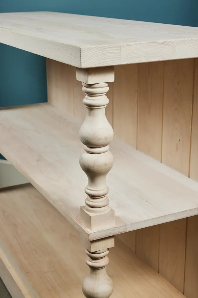 Custom 3-Tier Wall Console With Shelves, Turned Wood Column Accent