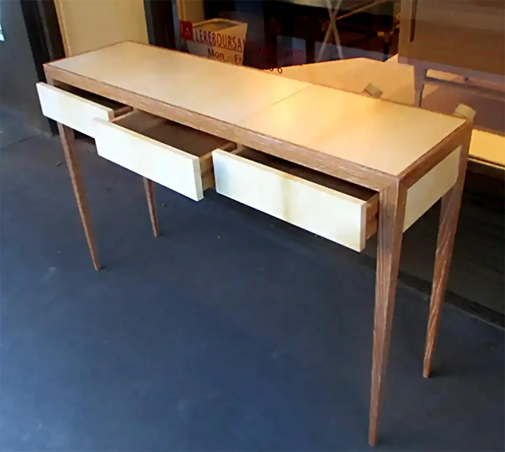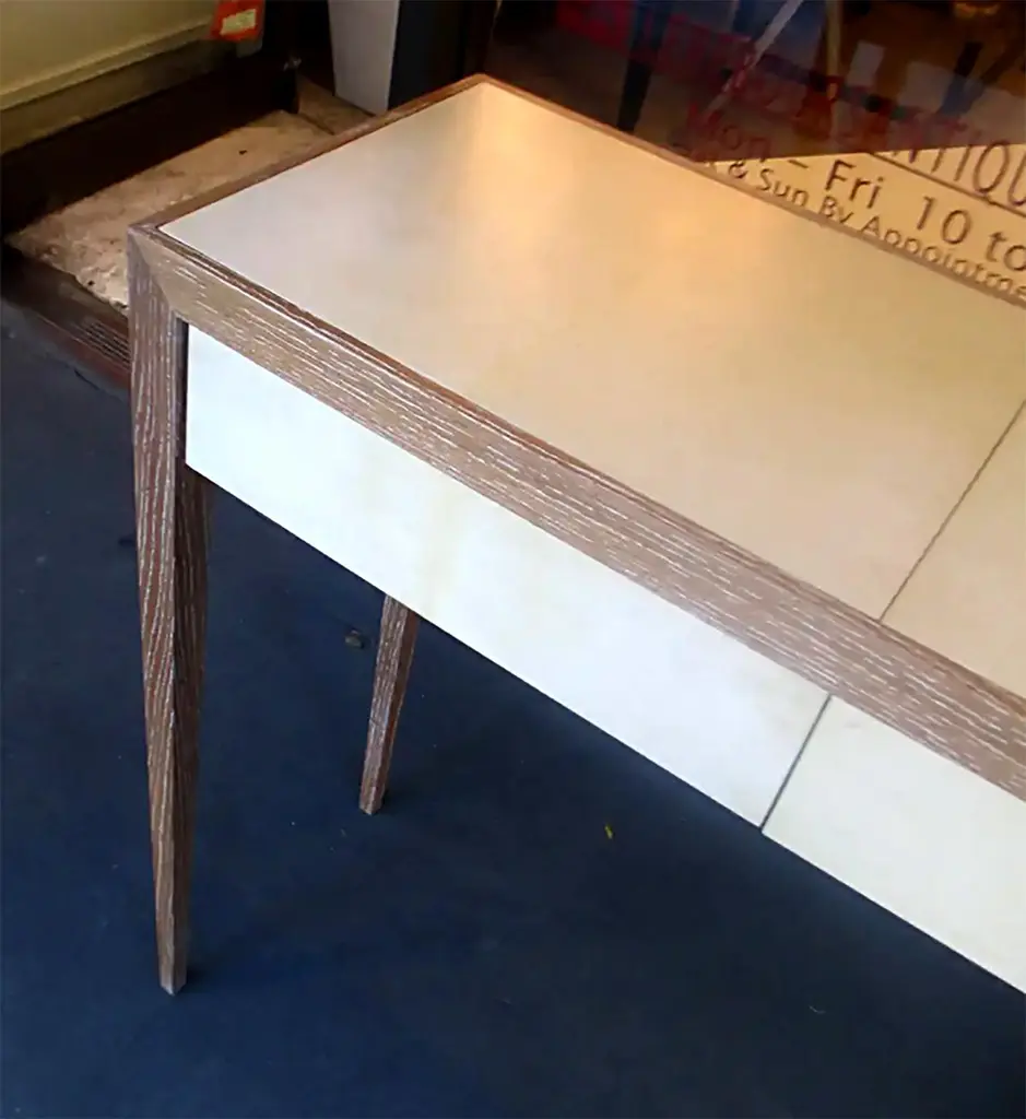 Custom Cerused Oak And Parchment Console Table