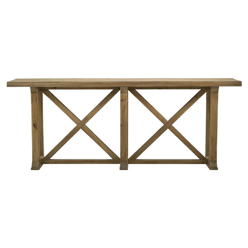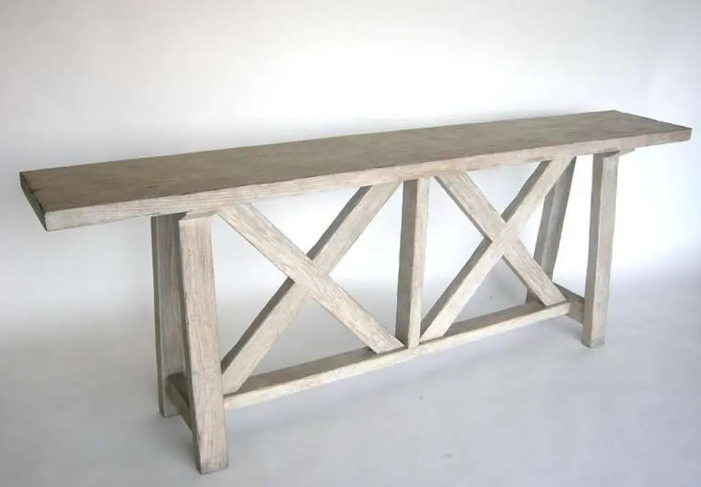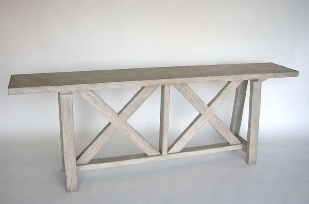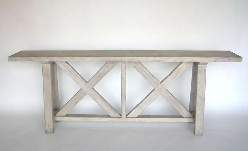 Custom Oakwood Double X Console Table In Drift Wood Finish By Dos Gallos Studio