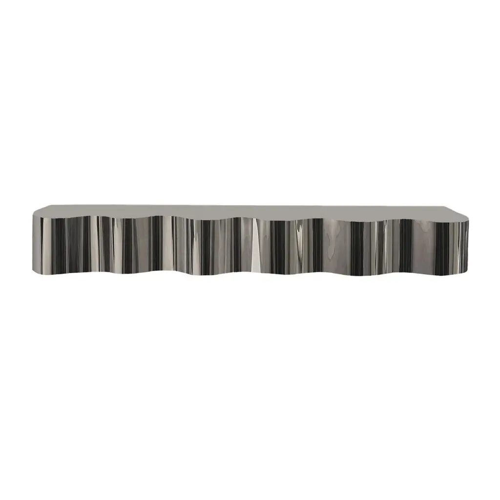 A striking piece of modern design, Venfields wall mounted Wave Console is both a work of art as well as a functional piece of furniture designed to enahnce almost any interior space. It's reflective, undulating, stainless steel surface is perfect for displaying objects, holding keys or simply adding a scuptural element to your interior. This unique consol is custome made to order to your exact dimensions.Available in polished and brushed Stainless Steel or Brass and matte or gloss lacquer color of choice. Please inquire with Venfield for estimates and lead times.