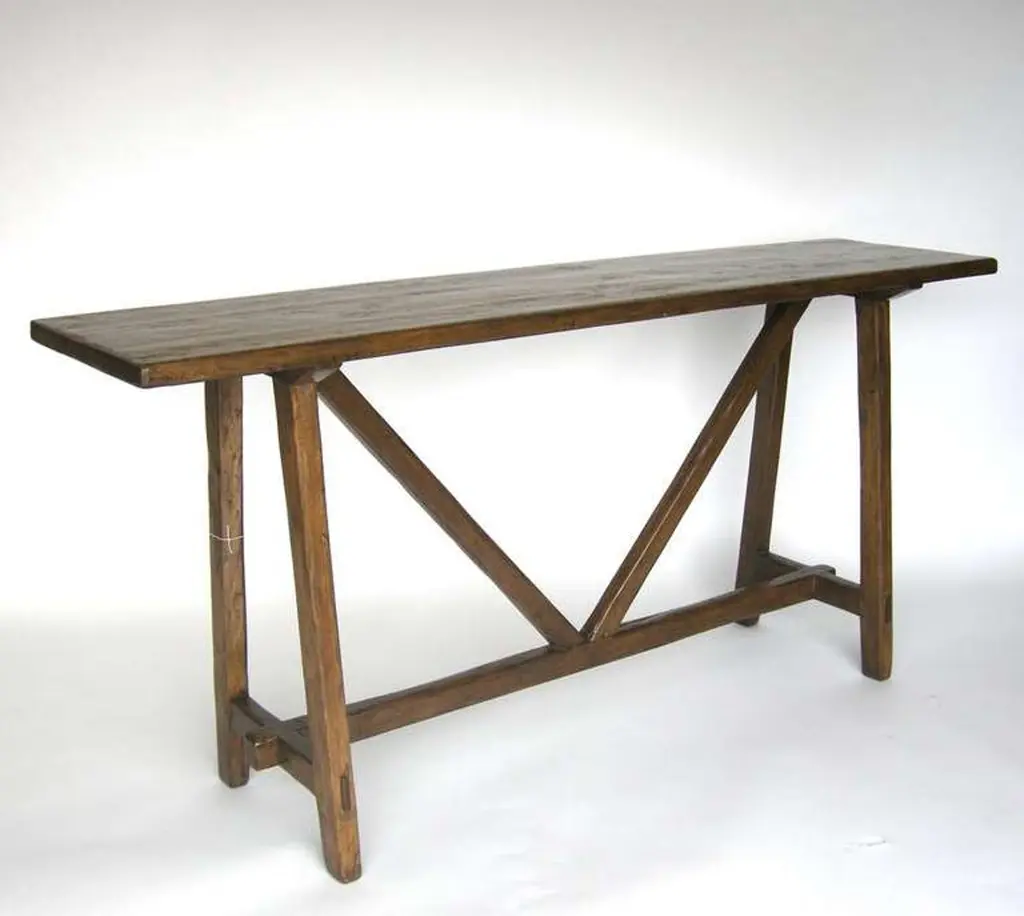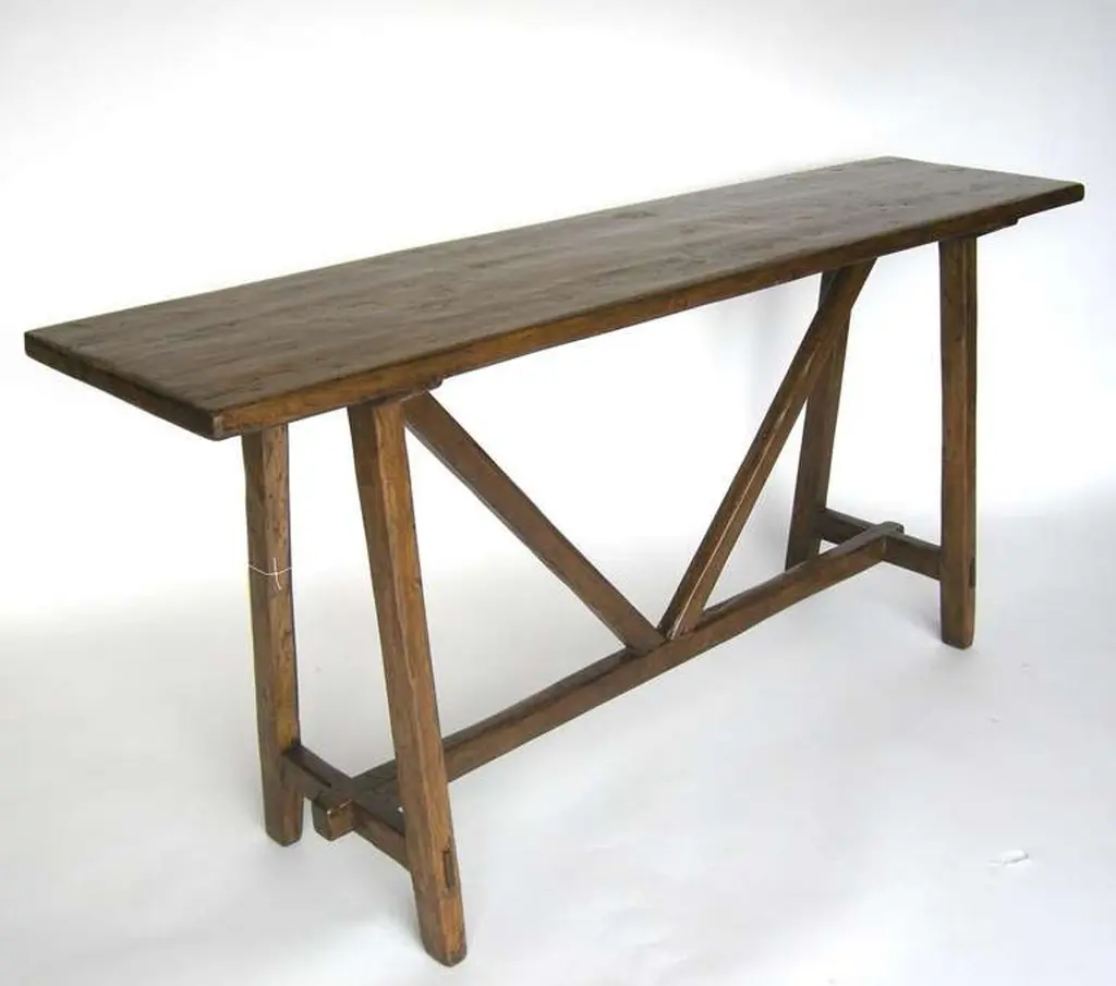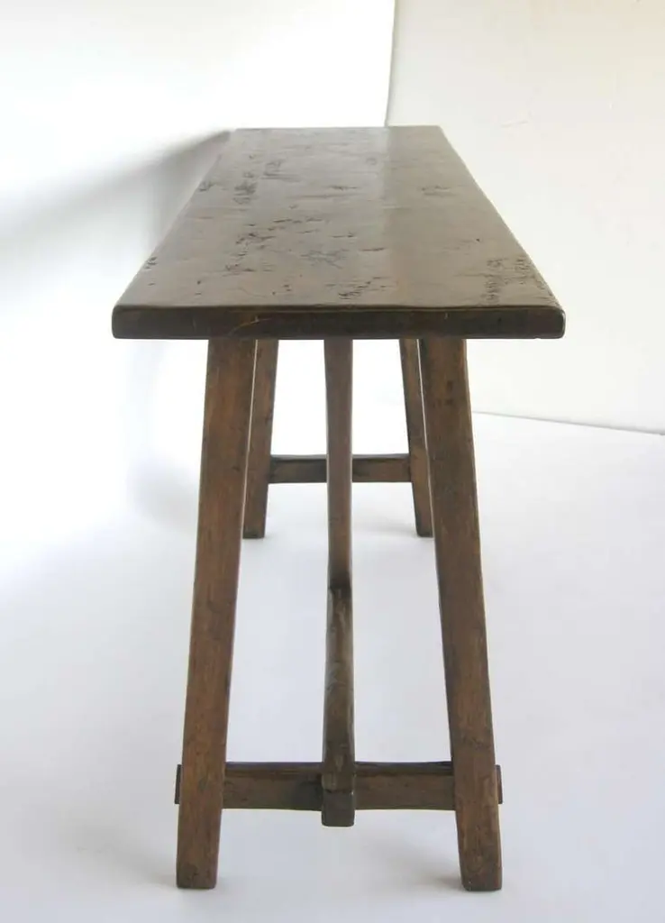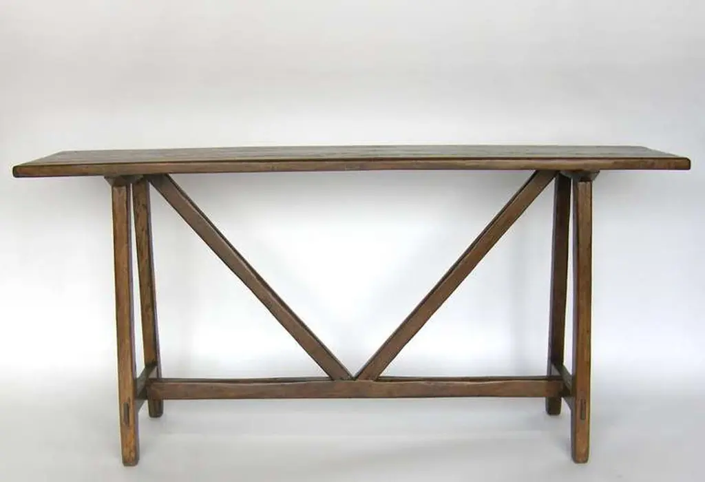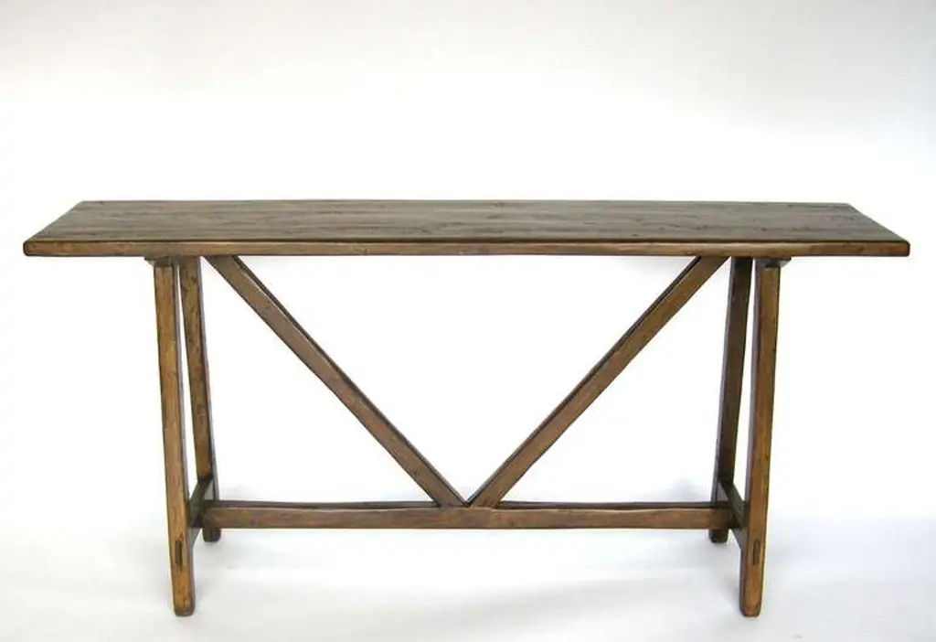 Classic Custom walnut console with V-stretcher. Great thin profile. Can be made in custom sizes and finishes, in walnut, oak or mahogany. Made by Dos Gallos Studio in Los Angeles. CUSTOM PRICES ARE SUBJECT TO CHANGE DUE TO FLUCTUATING MATERIAL AND LABOR PRICES. PLEASE INQUIRE BEFORE PLACING AN ORDER. CUSTOM ORDERS ARE NON RETURNABLE. FINAL SALE