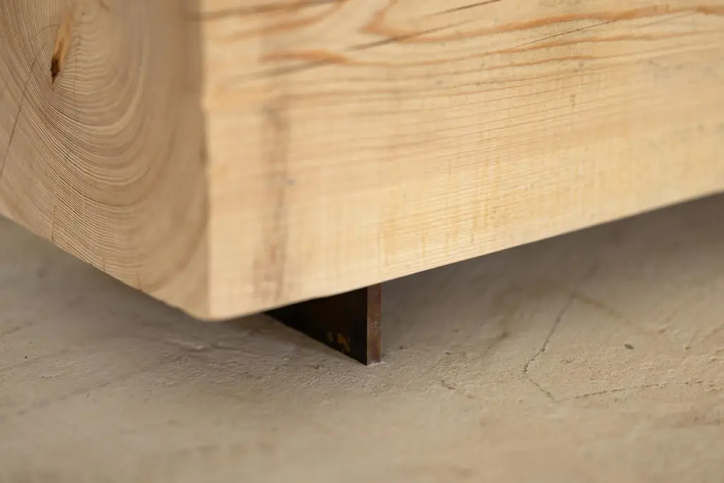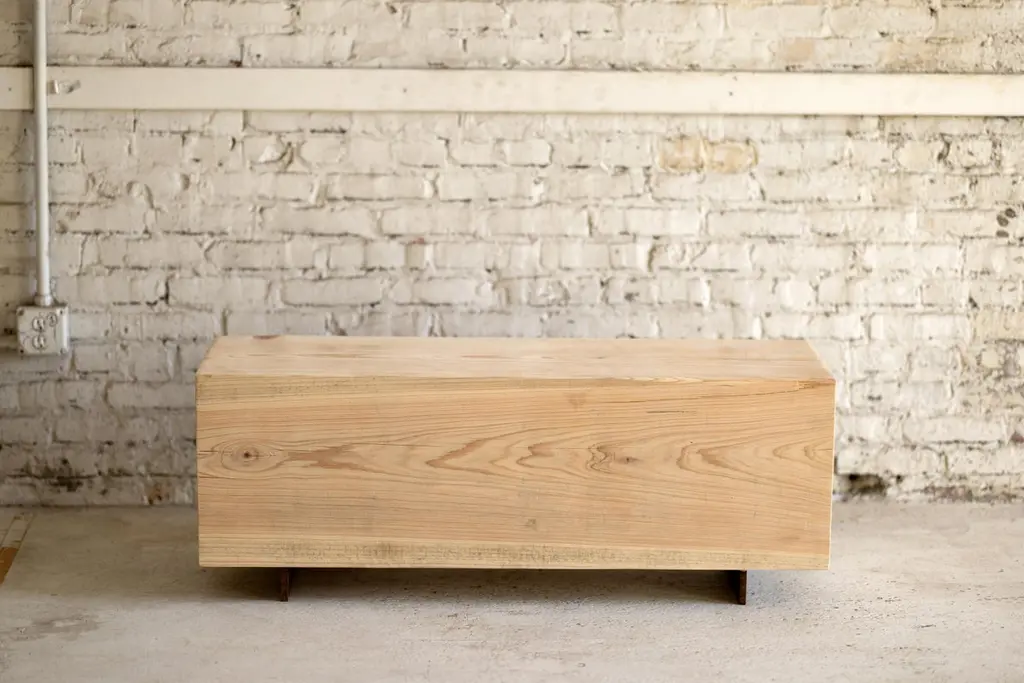 Our wood beam bench in cypress utilizes salvaged wood logs for a rustic seating experience. Narrow and backless, the simple lines express the natural texture of the end grain. The 15" x 15" beam is milled and finished to sit on a Corten steel base. With an emphasis and respect for natural materials, the beam bench brings primitive beauty and quiet luxury at a variety of lengths.Get creative and use the beam bench as a coffee table or low console table in the living room or bedroom. A low sheen, clear urethane finish adds an extra layer of protection to this already durable wood.We can customize the length up to 8' long. Images are representational of the benches we have in stock. Each beam bench is slightly different.Sprouts can form from the cut trunk of bald cypress trees as old as 60 years. Most live up to 600 years, but some individuals have survived 1,200 years.