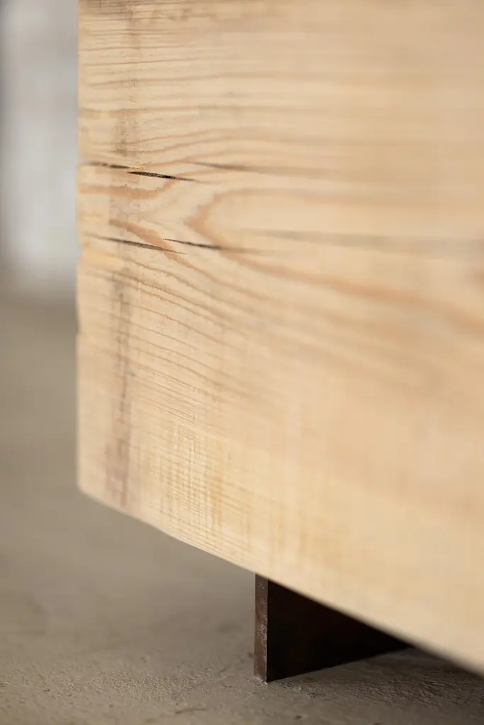 Our wood beam bench in cypress utilizes salvaged wood logs for a rustic seating experience. Narrow and backless, the simple lines express the natural texture of the end grain. The 15" x 15" beam is milled and finished to sit on a Corten steel base. With an emphasis and respect for natural materials, the beam bench brings primitive beauty and quiet luxury at a variety of lengths.Get creative and use the beam bench as a coffee table or low console table in the living room or bedroom. A low sheen, clear urethane finish adds an extra layer of protection to this already durable wood.We can customize the length up to 8' long. Images are representational of the benches we have in stock. Each beam bench is slightly different.Sprouts can form from the cut trunk of bald cypress trees as old as 60 years. Most live up to 600 years, but some individuals have survived 1,200 years.