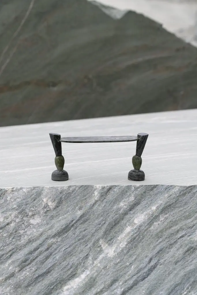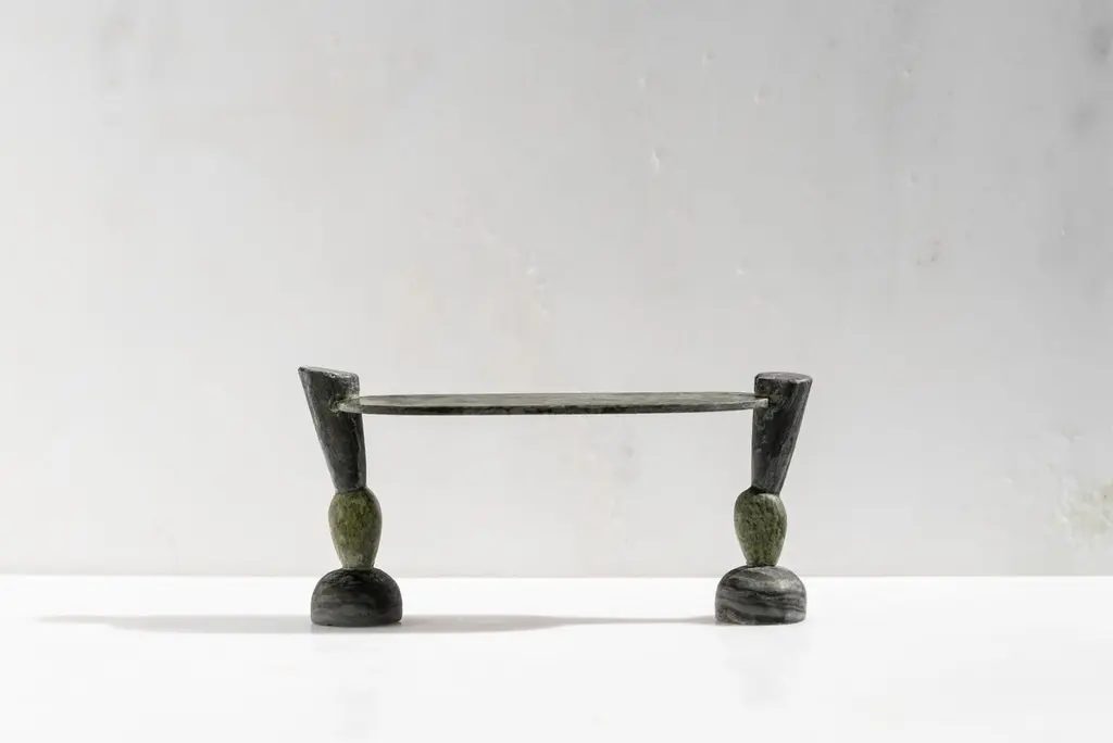 Dancing Leaves Sculptural Console by ON.ENTROPYDimensions: W 160 x D 40 x H 120 cmMaterials: Green Marble.on• entropy is a marble atelier established in 2009 in Athens and London with a focus on metamorphosis. Expanding from object to space consciousness. Marble, an archetypal Greek material, takes on an unconventional role in on• entropy's designs; they encapsulate the contradiction of being heavy and compact and at the same time vulnerable, fragile and translucent. Its diverse character is the core of the atelier’s founding mission: to experiment with marble and its entropy; its potential for metamorphosis, embracing its inherent limitations. The result is the craftsmanship of intricate and delicate sculptures, evolving its diachronic qualities in an imaginative & contemporary way. Created and run by sisters Niki and Zoe Moskofoglou, on• entropy is the fruit of a 40-year long, family affair with marble in Greece. NM is an architect with an academic training in Design. Her work demonstrates an architectural detailing and instinct of how Space and Object can surpass mere function. ZM is a civil engineer with expertise in Sustainable Heritage. She cultivates her passion in the marriage of cultural and natural environment through academic research in Cultural Landscapes. NZM founded their design studio to reflect both art and craft. Pushing the boundaries of marble, their work begins with the human experience and an interaction with the senses; it demands contemplation.All our lamps can be wired according to each country. If sold to the USA it will be wired for the USA for instance.