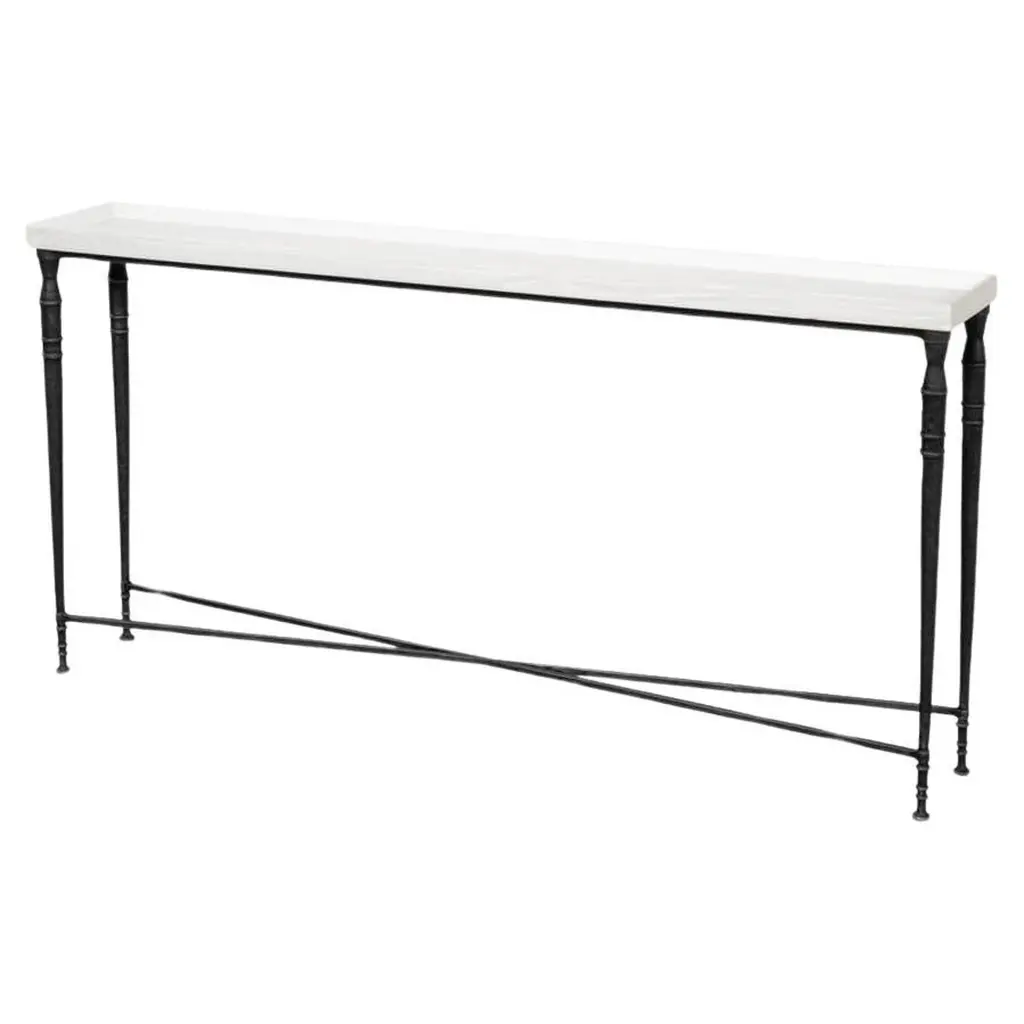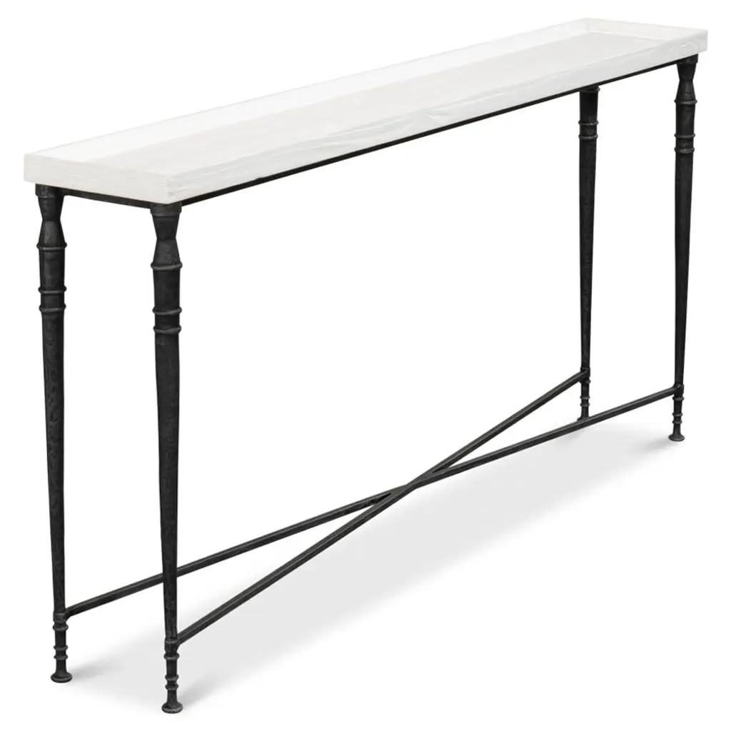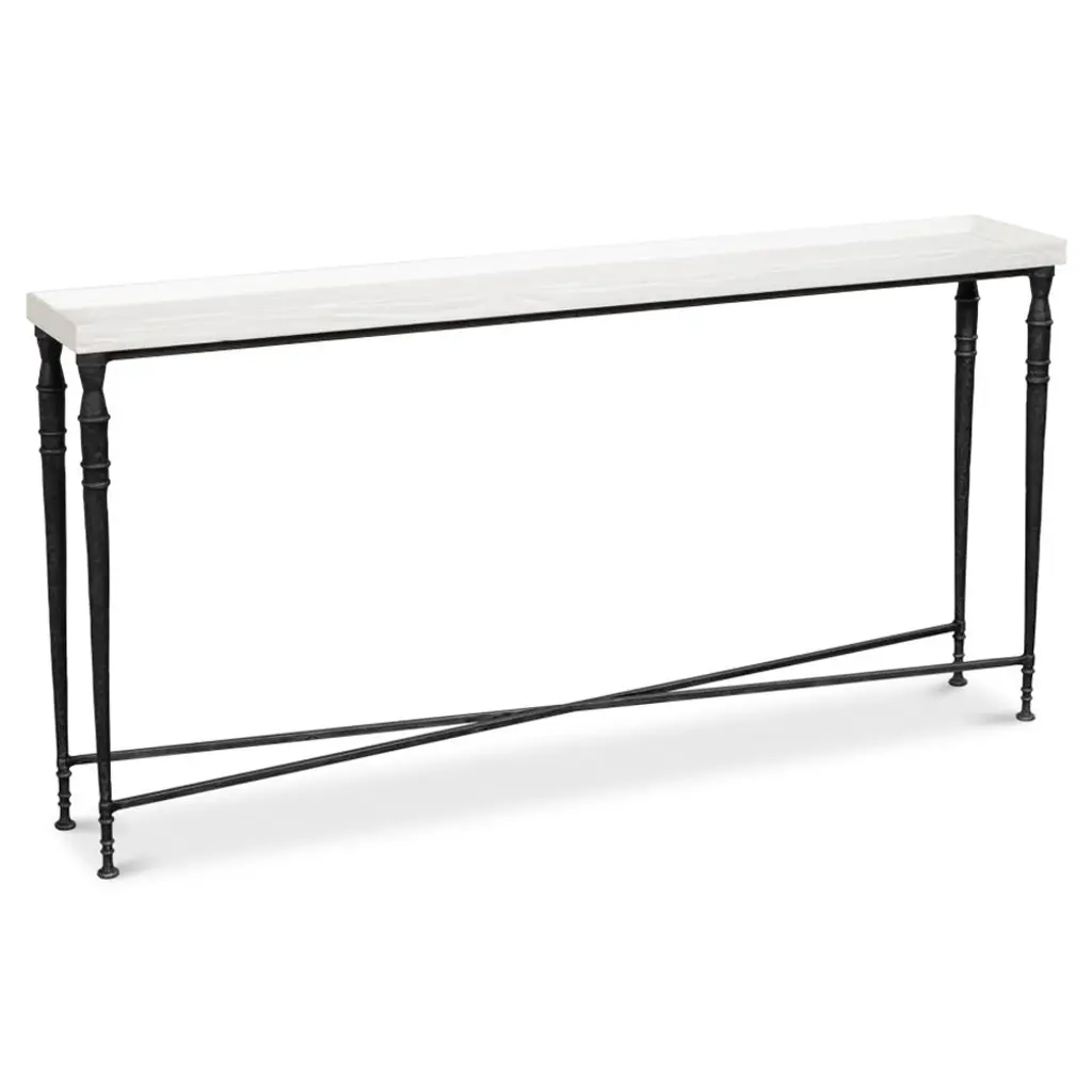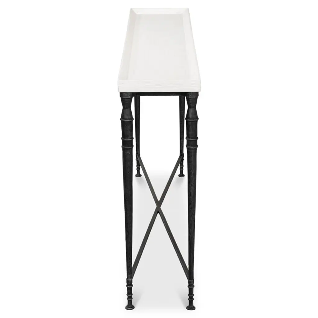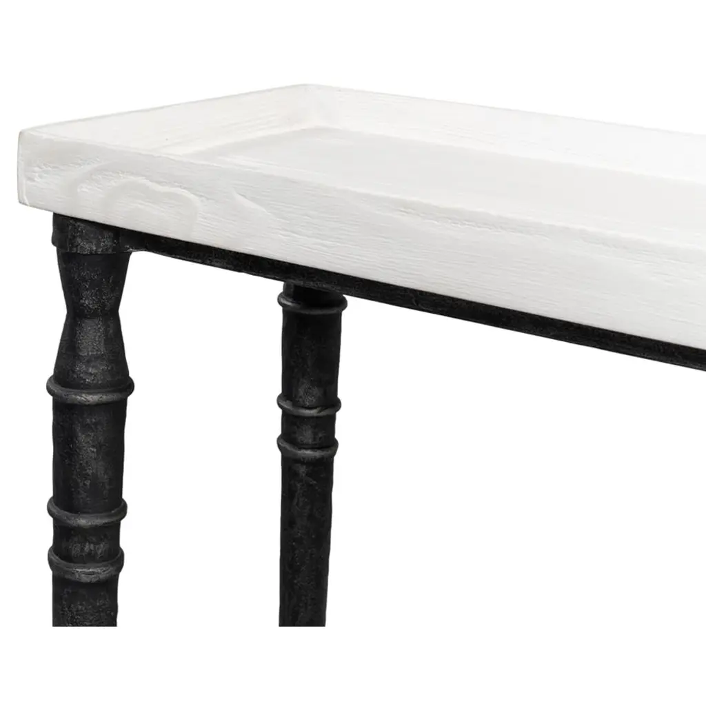 Daniel French Country Off White Pine Black Iron Rectangular Console Table