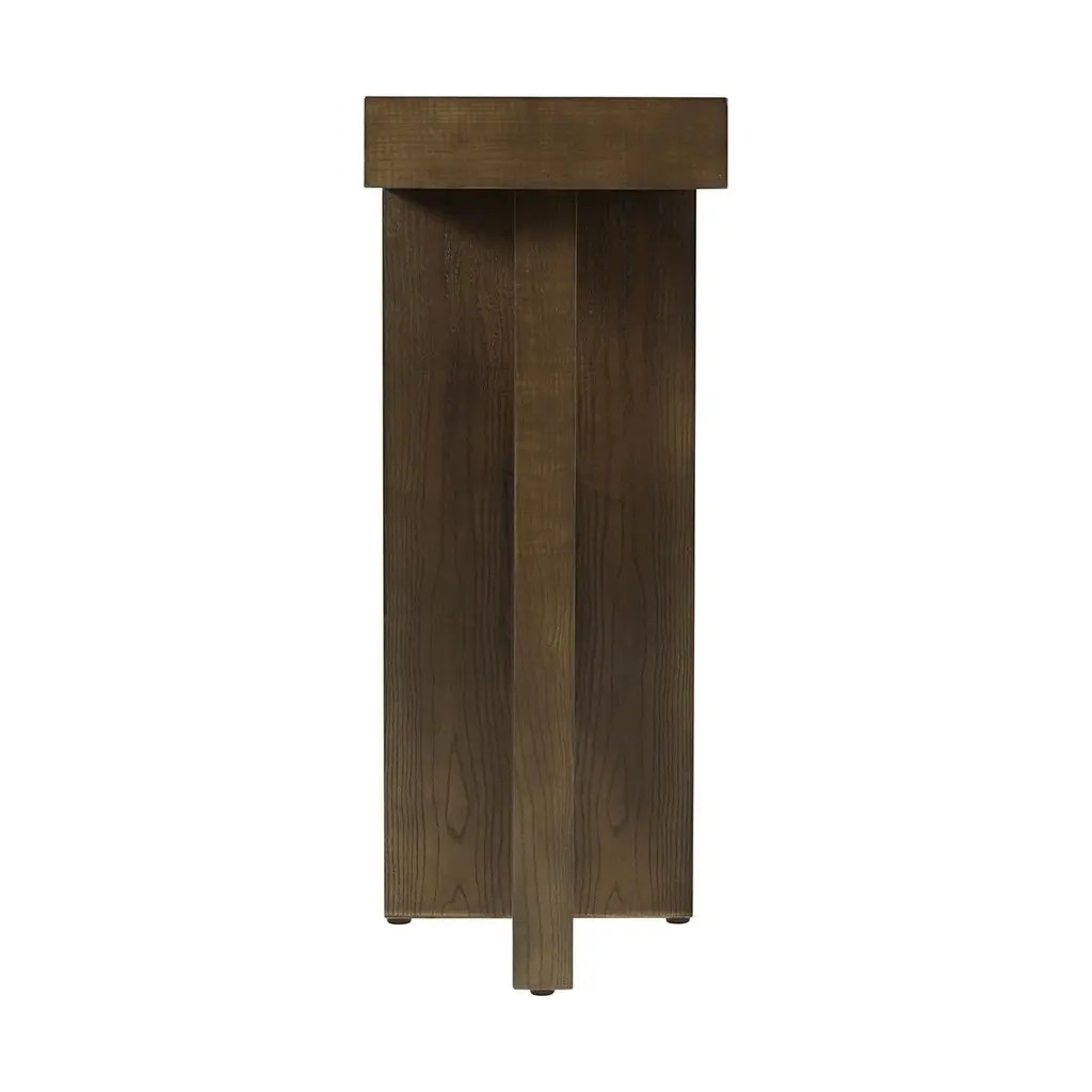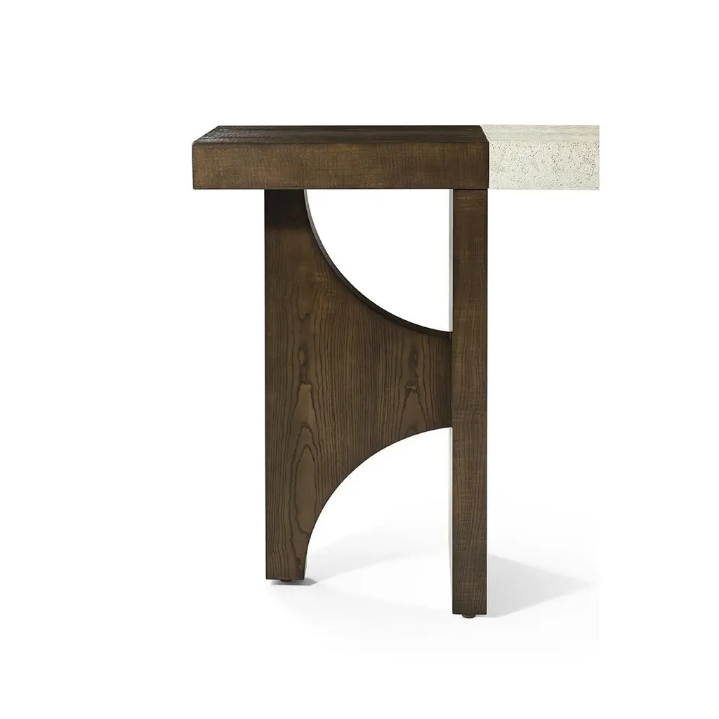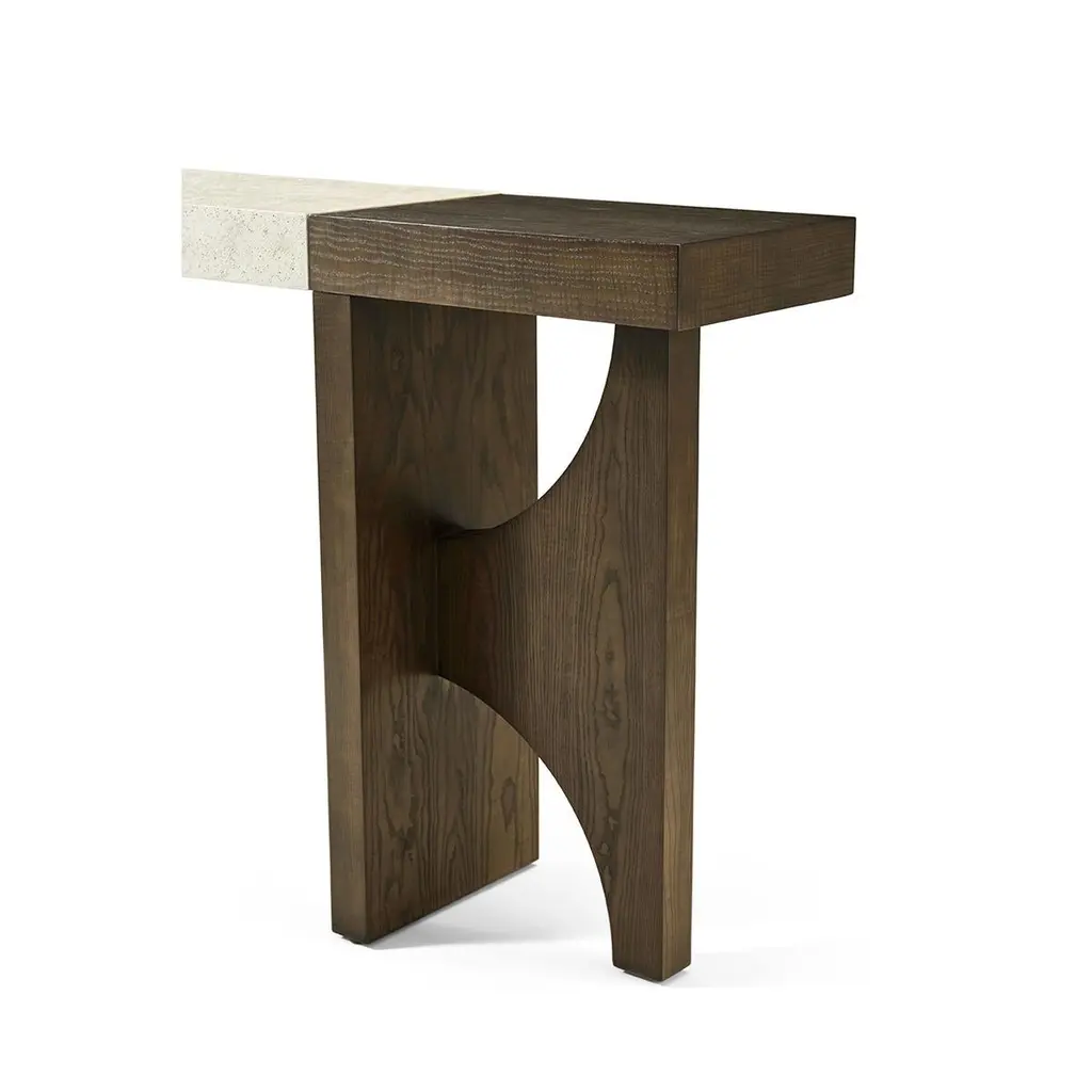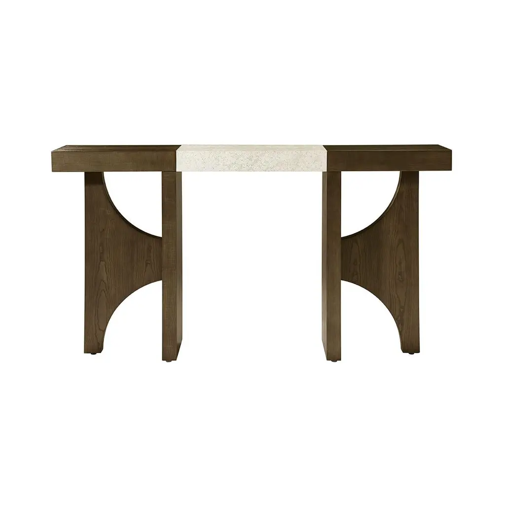 Made of figured ash with artful grain patterns and finished in our dark earth finish. With our exclusive stone-line porous Mineral finish on the top central section.Dimensions: 68" W x 14" D x 34" H