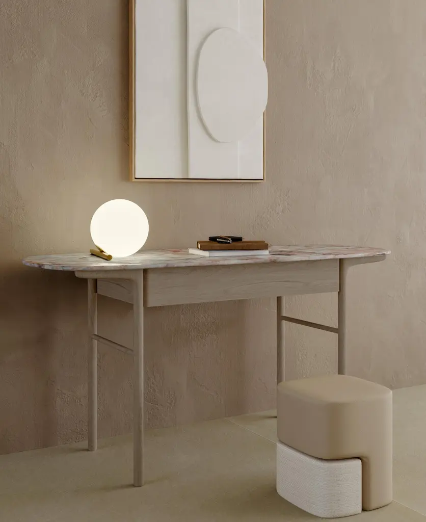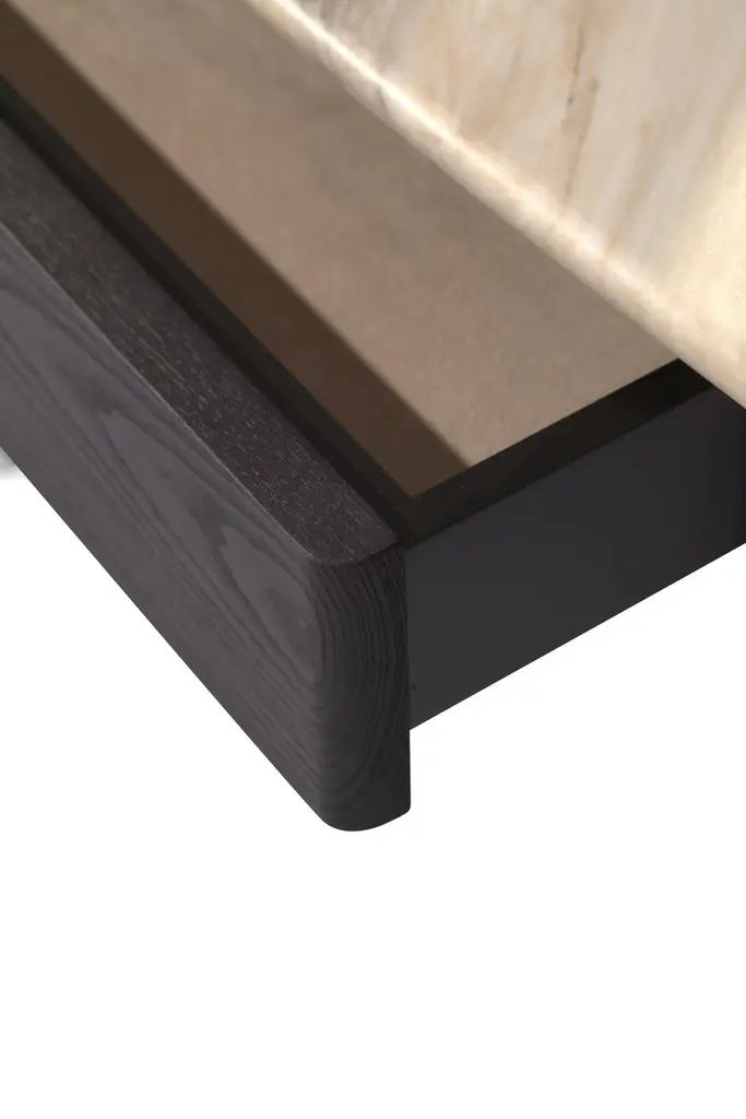 This beautiful console is distinguished by the ash wood structure and the marble top that create a refined and linear design; it can be used as an entryway console or as an iconic desk for your office. The drawer has a soft locking system.Finishing cod. 33 Carbon (5 Gloss).The marble top is Palissandro Marble cat. B, but it is also possible to choose a laquered matte top.Other finishings and marbles are available.The item can be customized.