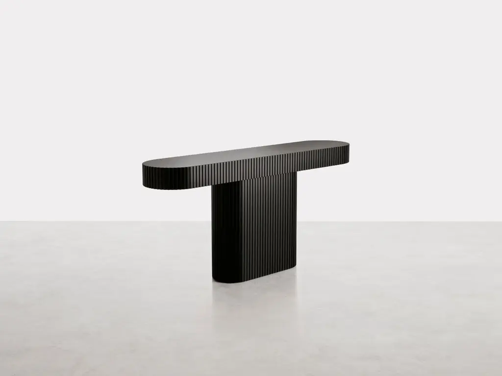 Diapason Console by SomaschiniDimensions: W 150 x D 35 x H 75 cmMaterials: Structure composed of curved plywood and mdf. Black matt polyester lacquered finish.Console in N.142 Black lacquered matt finishAbout: Somaschini is a new-born brand, with a strong, innovative attitude, and rich artisan heritage in 1940s Brianza — a hard-working region of Lombardy, internationally renowned for the production of high quality design. It thrives, however, on new ideas and contemporaneity and never lapses into nostalgia but rather masters its own high craft. It shows a certain obstinacy in pursuing techniques honed over decades, preferring to make them speak through new languages. Hence it challenges tradition with a bold, intelligent, and confident approach.