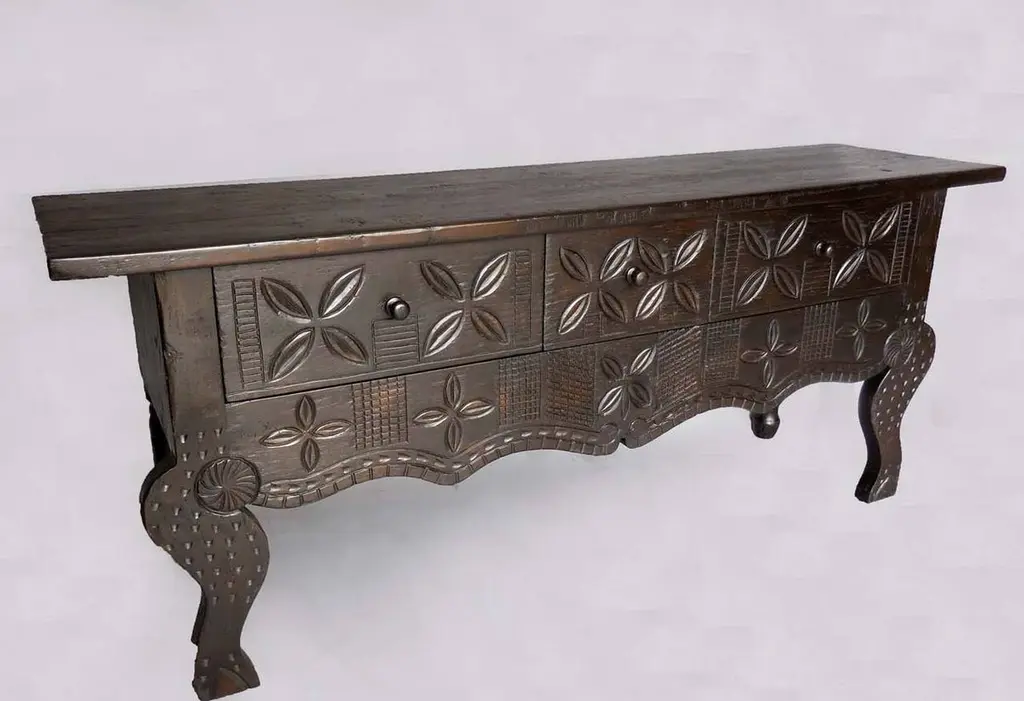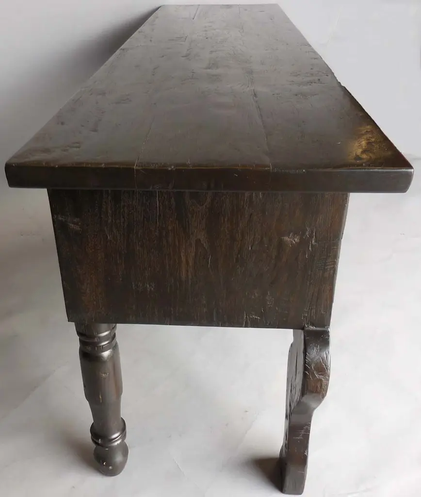 Dos Gallos Custom Hand-Carved Oak Wood Console With Stylized Animal Legs