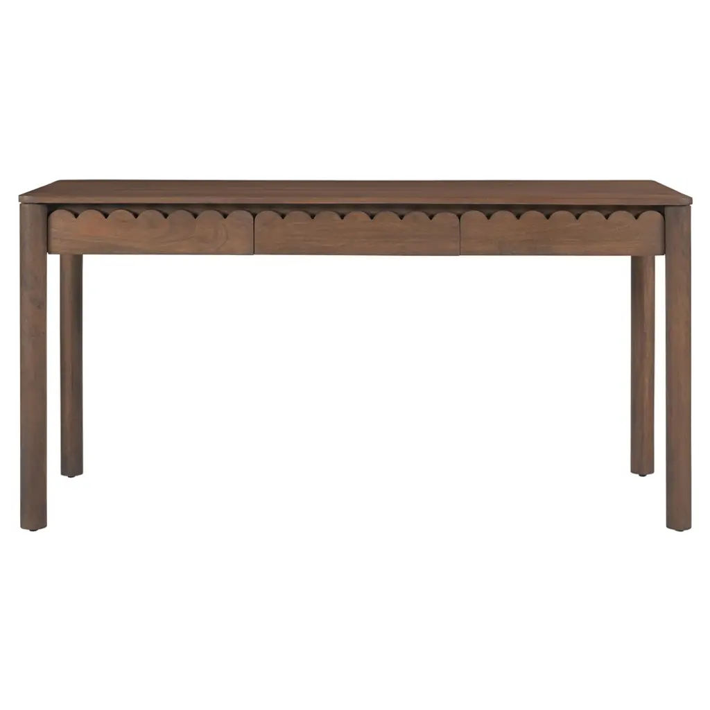 Hand-carved oakwood Nahuala (animal spirit) console with three drawers and ball and claw front feet. Turned legs in the back. Knob pulls.Can be made in any size and finish. Made in Los Angeles by Dos Gallos Studio.CUSTOM PRICES ARE SUBJECT TO CHANGE. PLEASE INQUIRE BEFORE PLACING AN ORDER. CUSTOM ORDERS ARE NON RETURNABLE. FINAL SALE