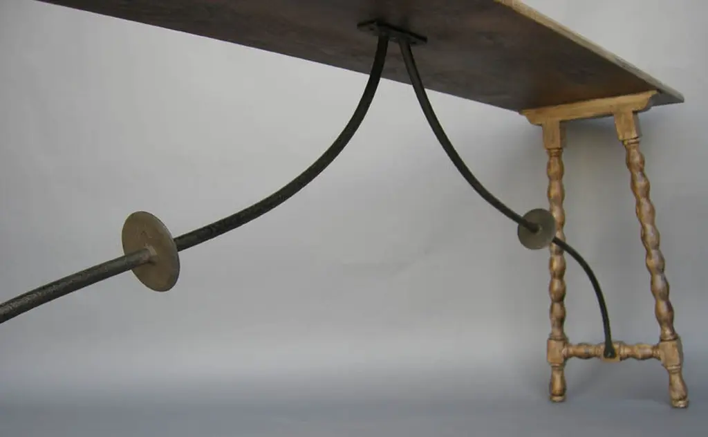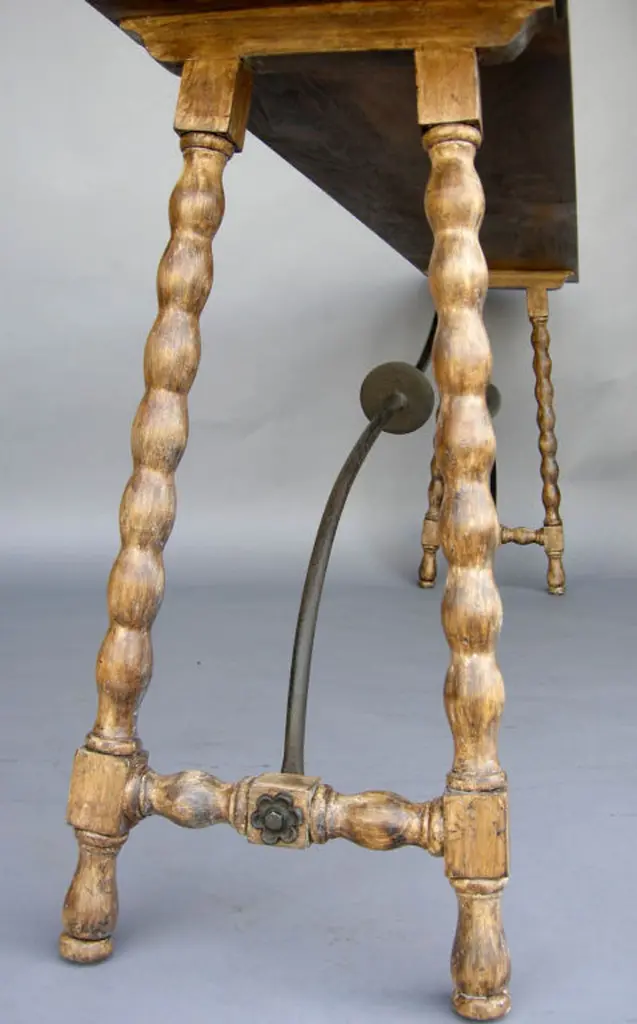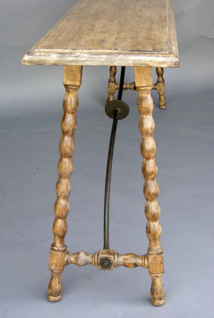 Dos Gallos Custom Skinny Wood Bobbin Leg Console With Iron Support