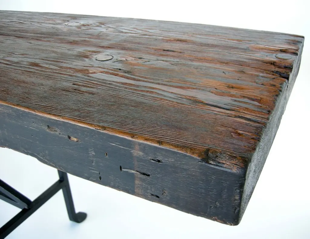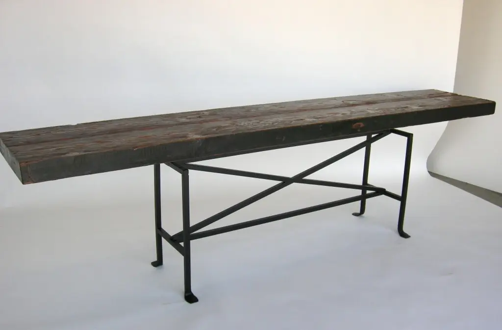 Dos Gallos Custom Wood Console With Hand-Forged Iron Base