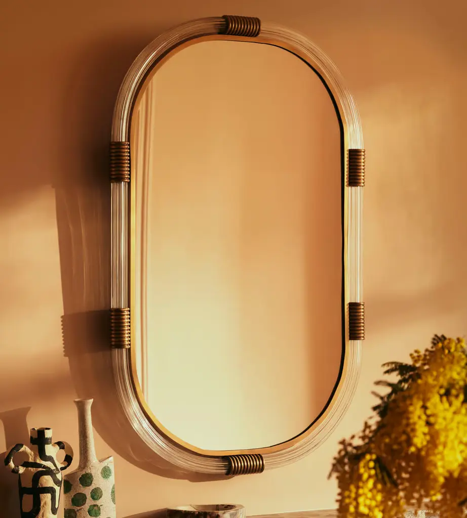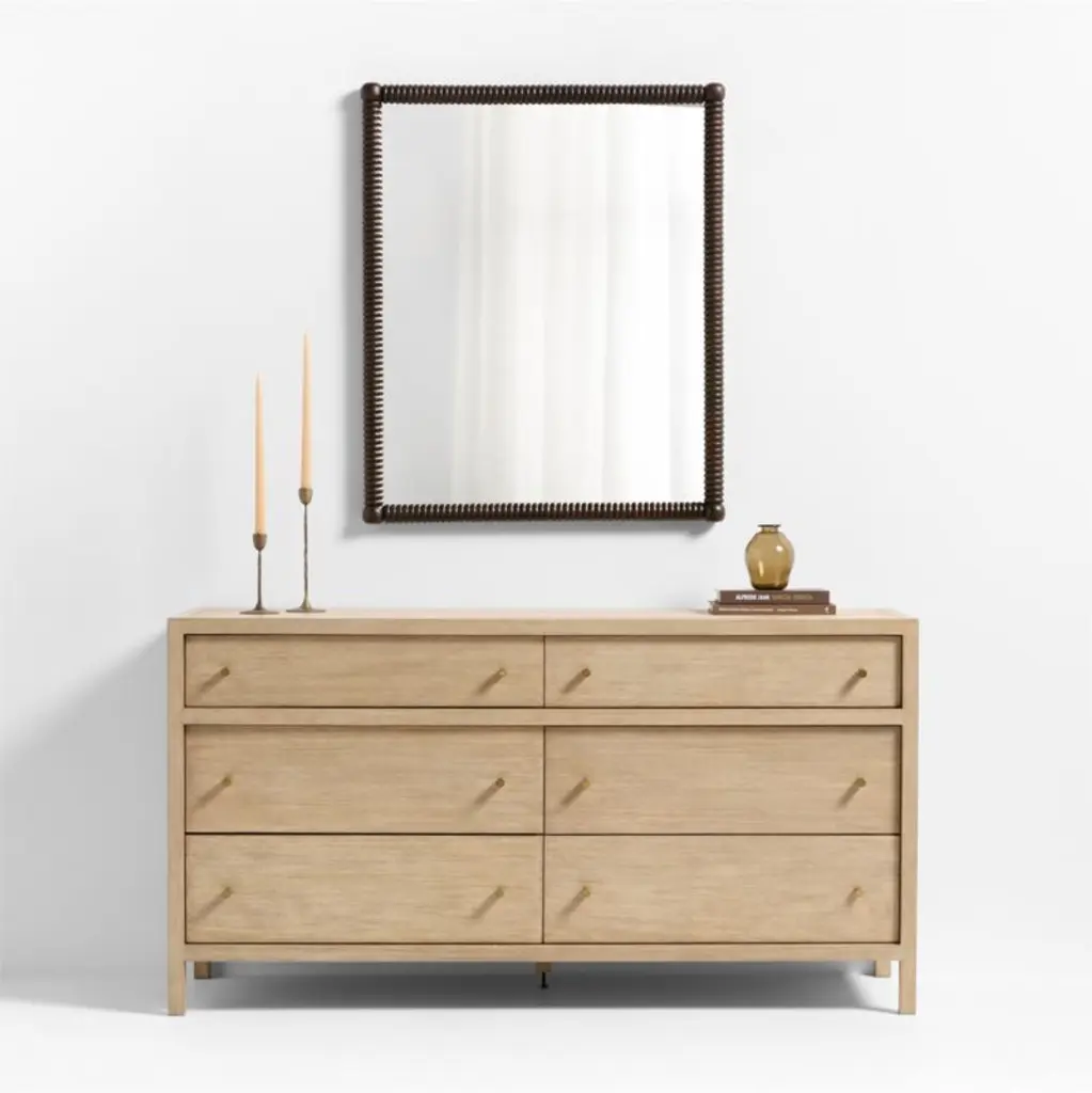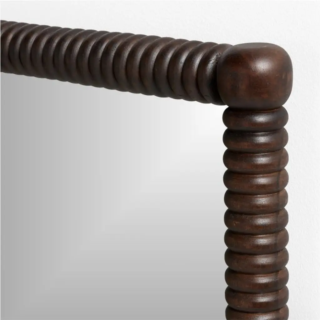 Inspired by antique turned spindles, our Dunmore wall mirror streamlines classic woodworking for the modern home. Sustainably sourced acacia wood carved in a spooled design shapes the rectangular mirror, accented at each corner with a spherical detail. Finished by hand in a deep walnut brown, the mirror looks traditional yet timeless hung above a console table, buffet or loveseat.