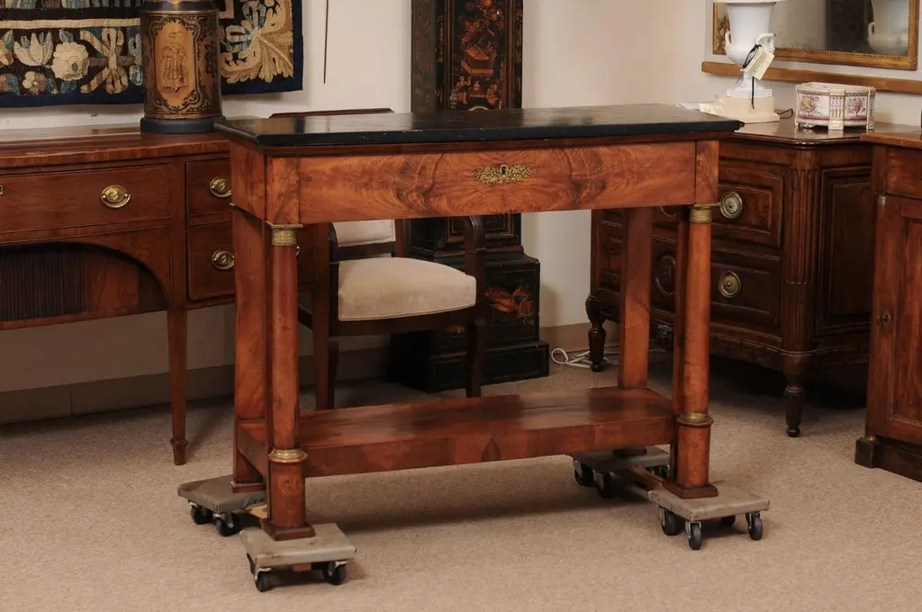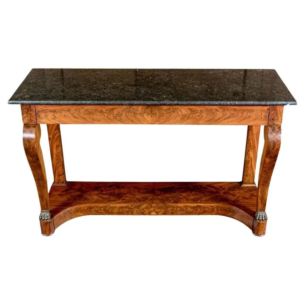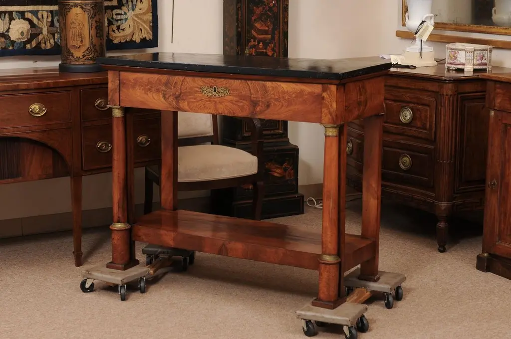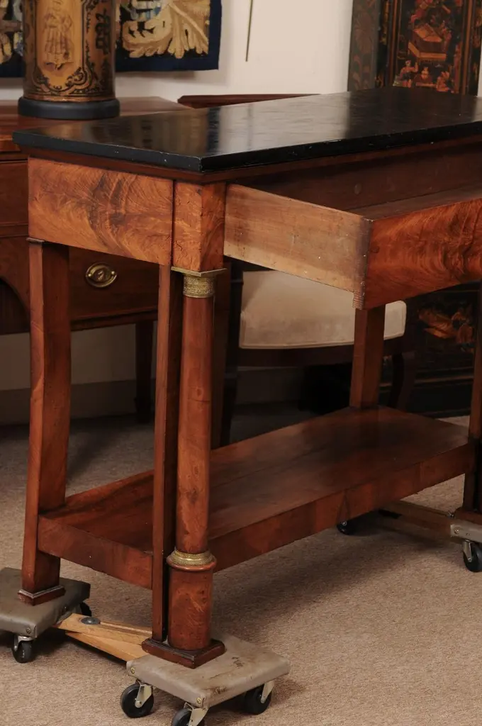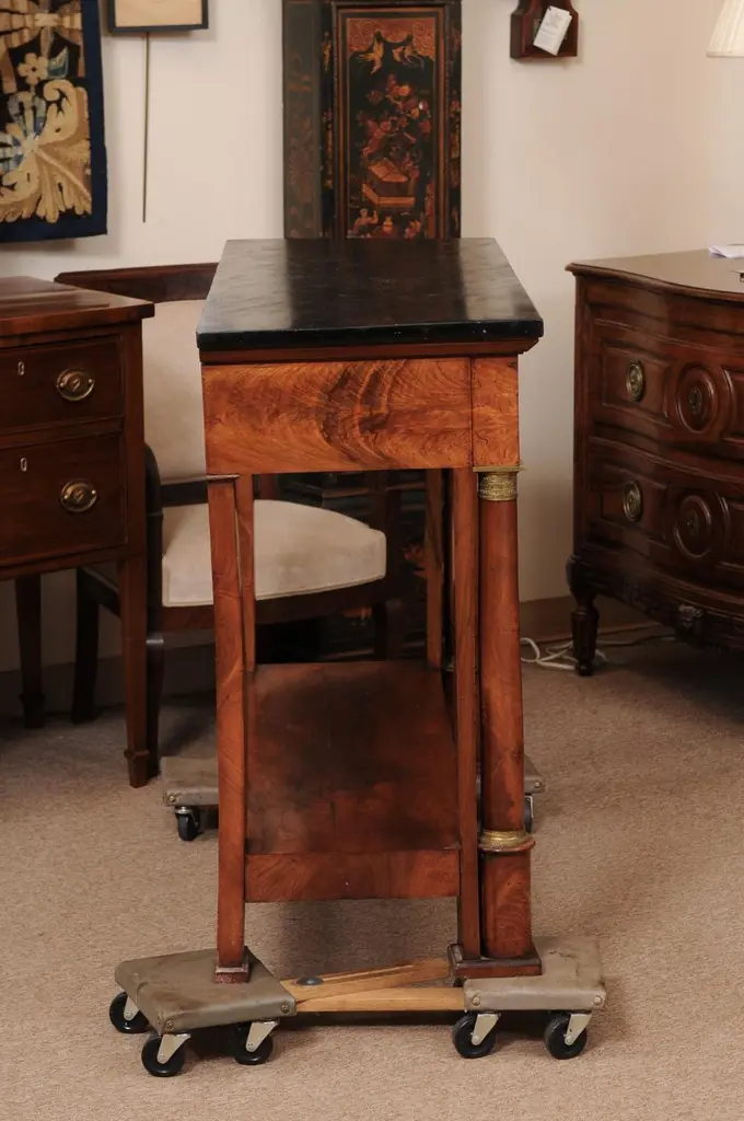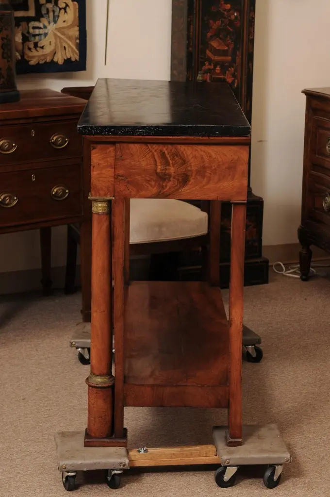 Early 19th Century French Empire Walnut Console with Ebonized Marble Top & Bronze Dore Details, ca. 1810