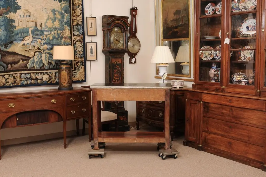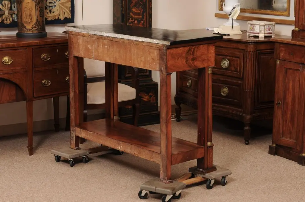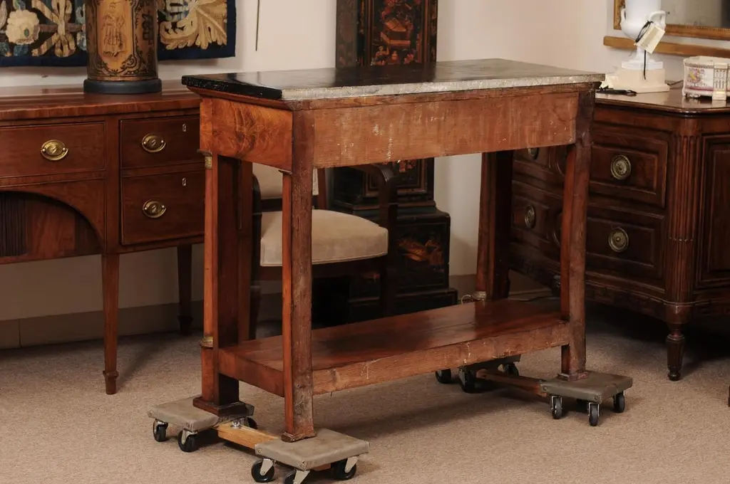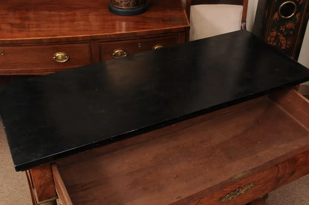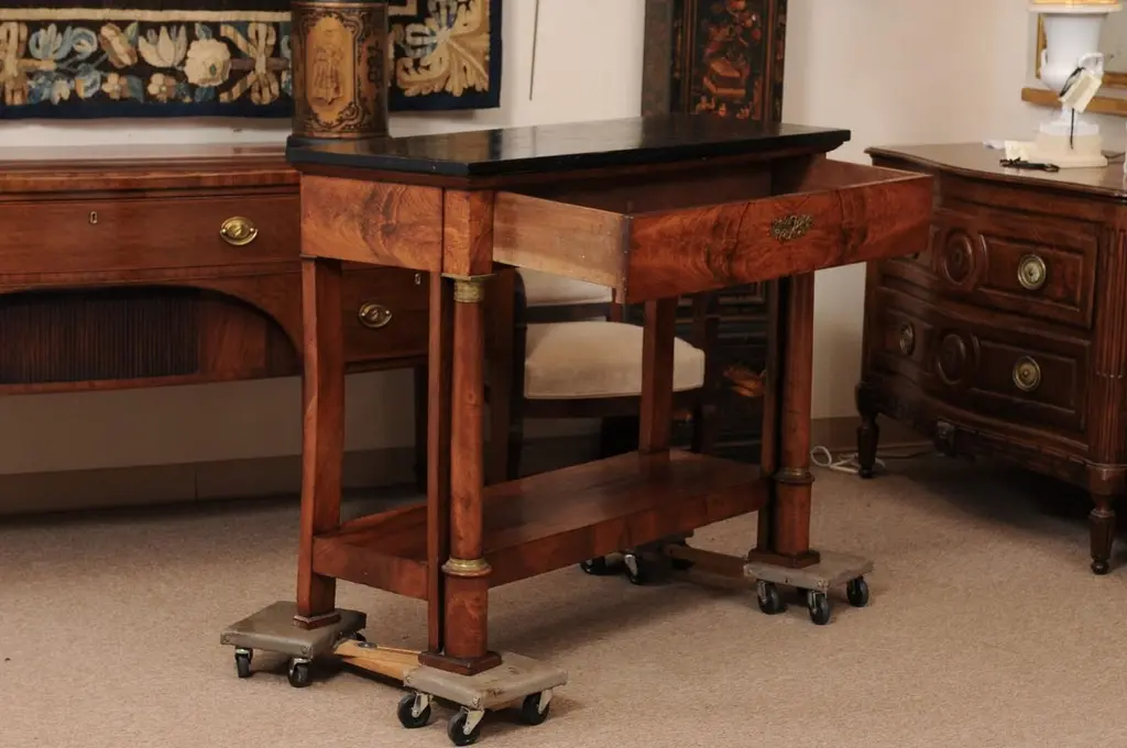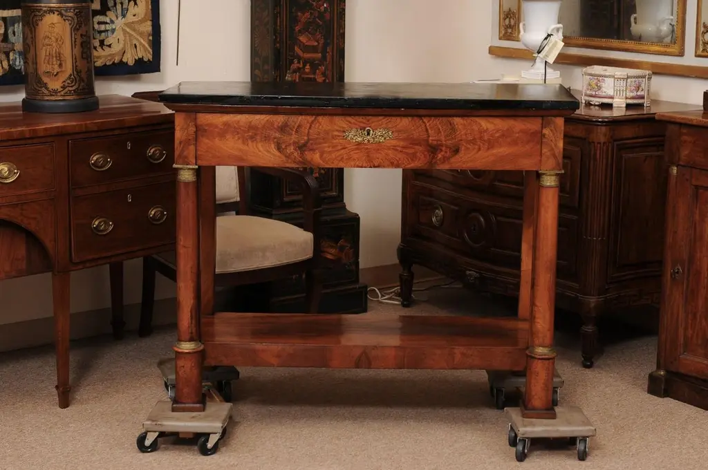 Early 19th Century French Empire Walnut Console with Ebonized Marble Top & Bronze Dore Details, ca. 1810