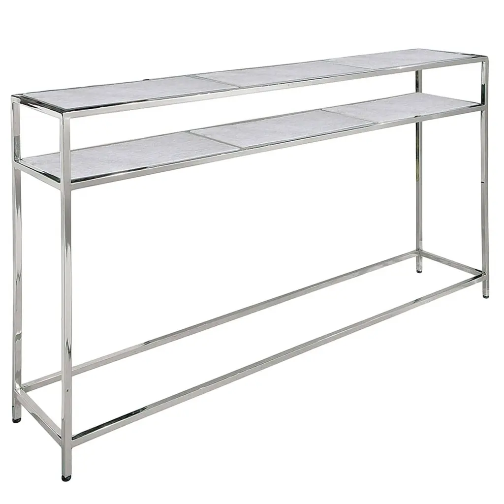 At home in a variety of decors, the Echelon console table pairs marble slabs with an iron frame. With its symmetrical design and slim design, it's ideal for showcasing art objects, photos, and collectibles.