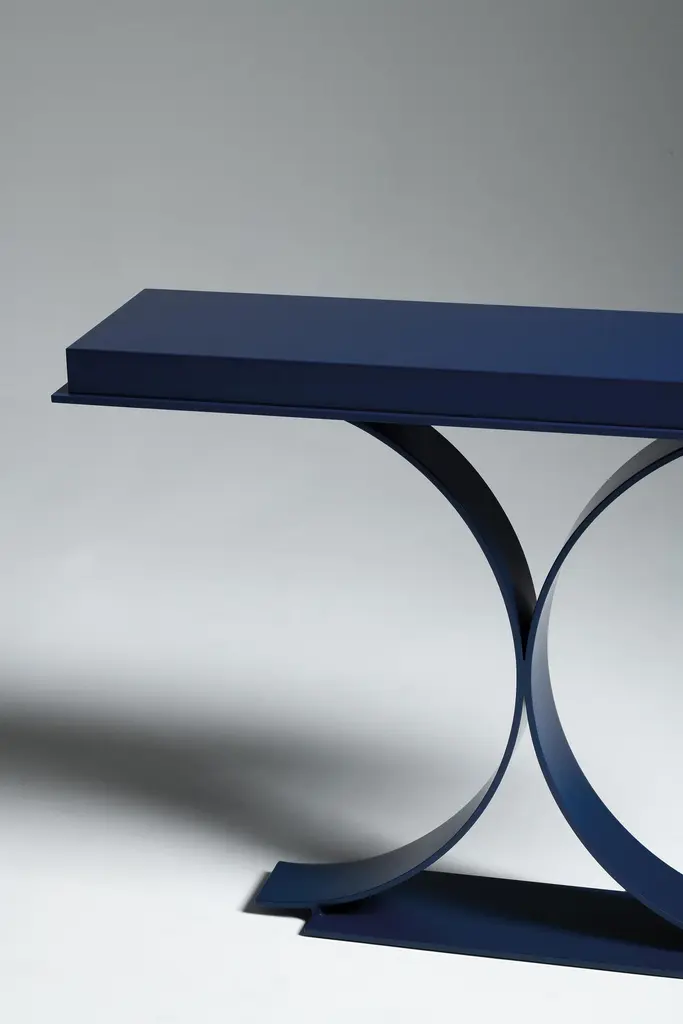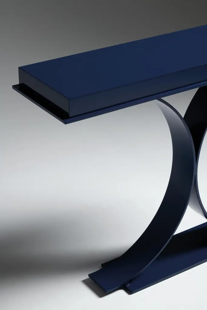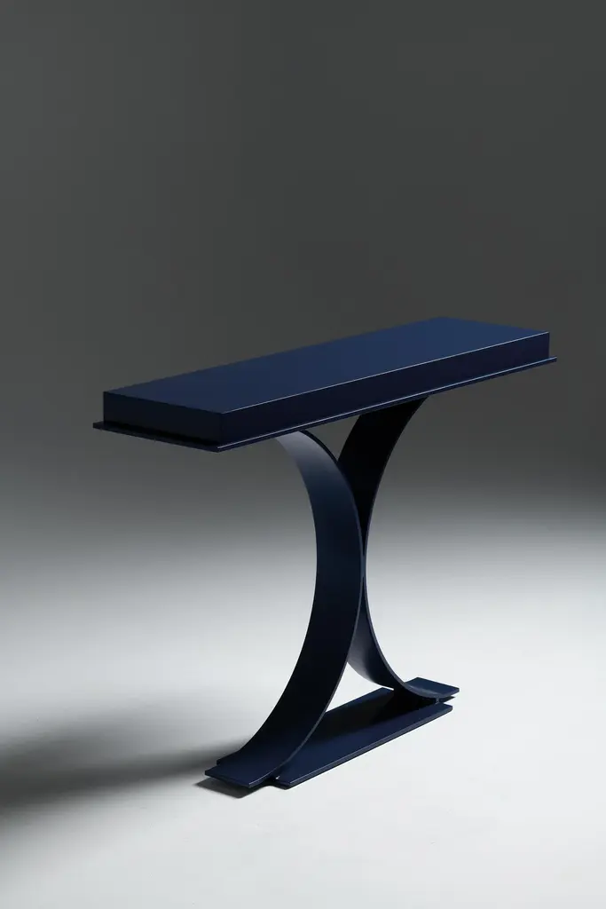 Memphis, France, Le Berre VevaudEmpreinte CollectionSteel base and wooden tray, glossy blue lacquered finish.