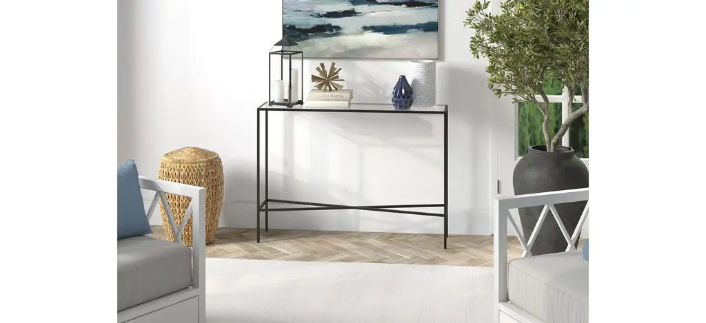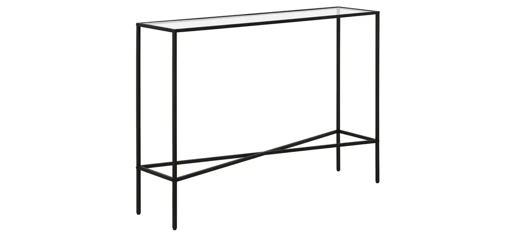 Made of steel and durable tempered glass, this Eden Brook Console Table makes a modern, industrial-inspired addition to any living area. The clean lines of the tabletop and frame are offset by the geometric crossbar, creating visual interest without weighing down the look. With a neutral metallic finish and streamlined design, it's easy to incorporate into a variety of styles and spaces.
