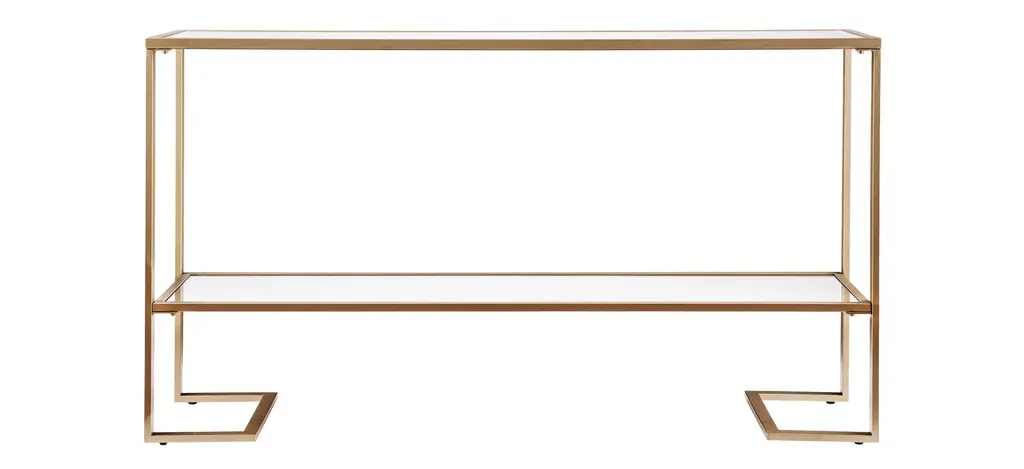Add style and warmth to living and office spaces with the well-designed Eiffel Console Table in antique brass iron. Can be styled behind a sofa or in a hallway or entryway for added impact and functionality.