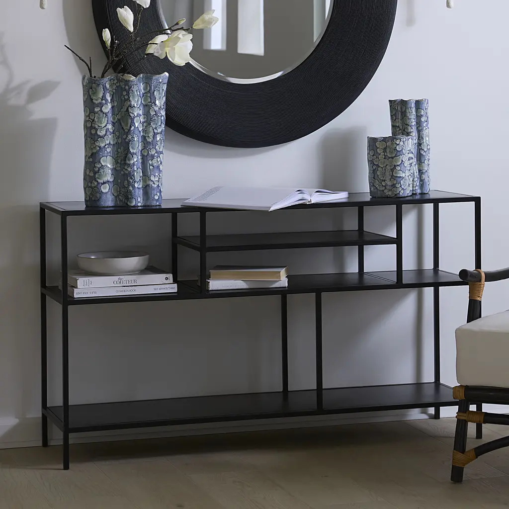 Element Shelved 51 X 14 Inch Black Iron Console Table