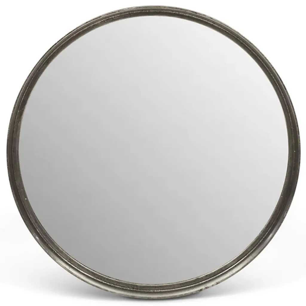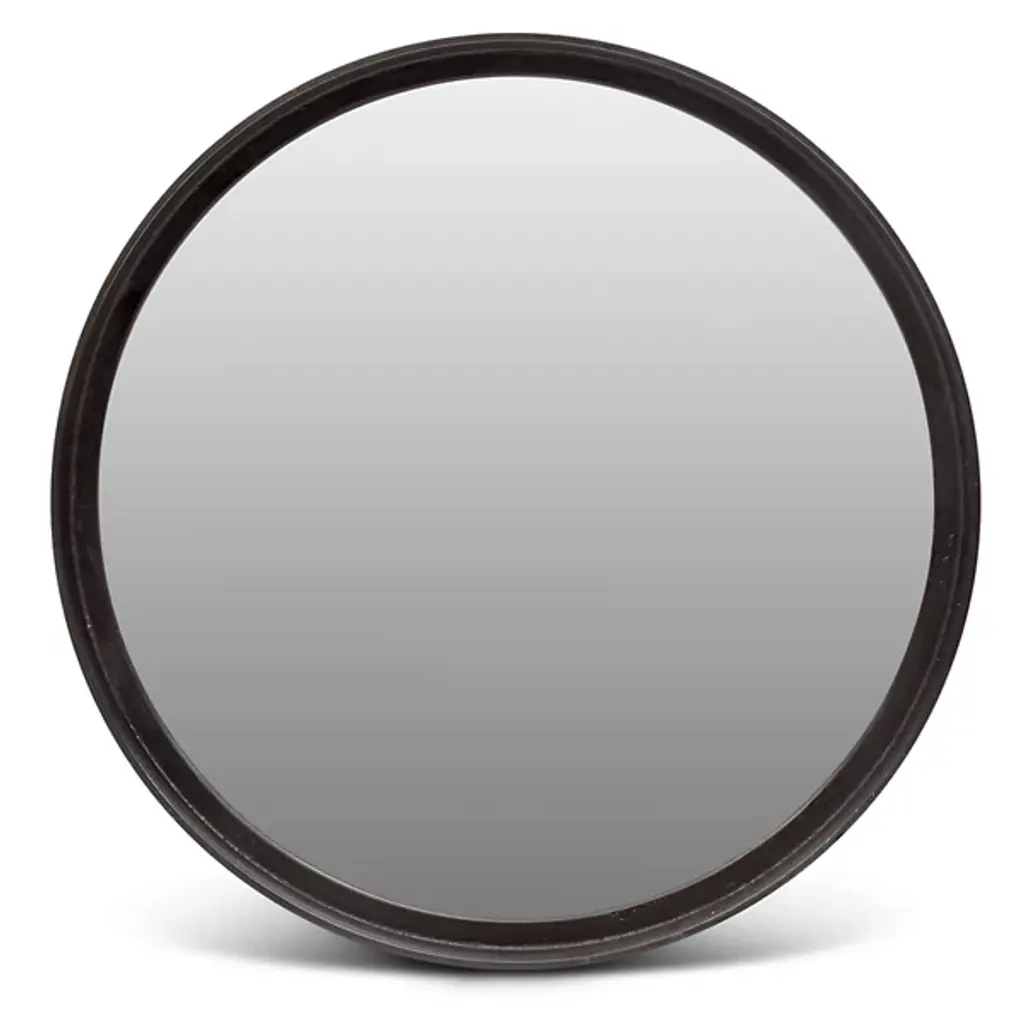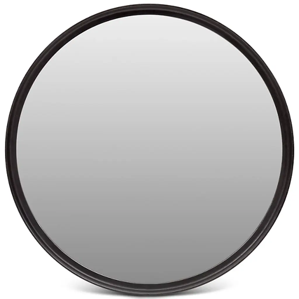 Modern home décor that pairs a simple form with unexpected depth. The Elements Samar Round Mirror by Urbia is a large, round wall mirror with a decorative metal frame that appears relatively slender from the front but, when viewed from the side, reveals a 3-inch depth. Hanging over an entryway console table or living room fireplace, this wall mirror is both an impressive centerpiece and a reflection of your minimalist good taste.
