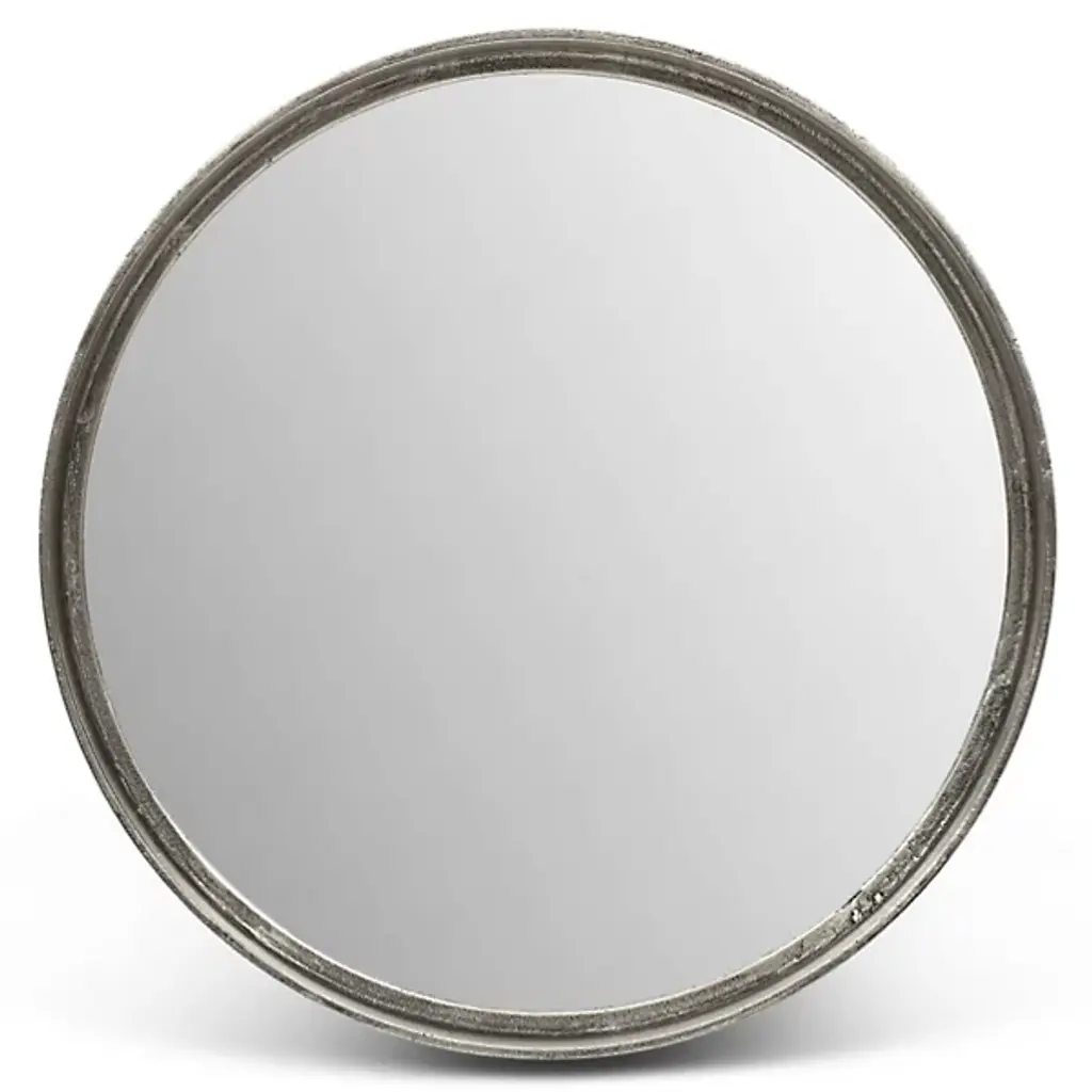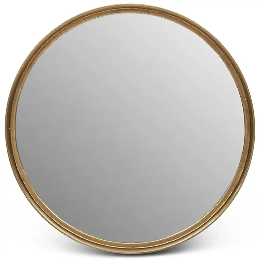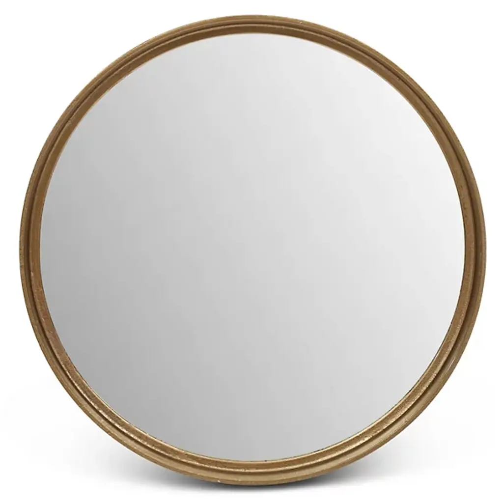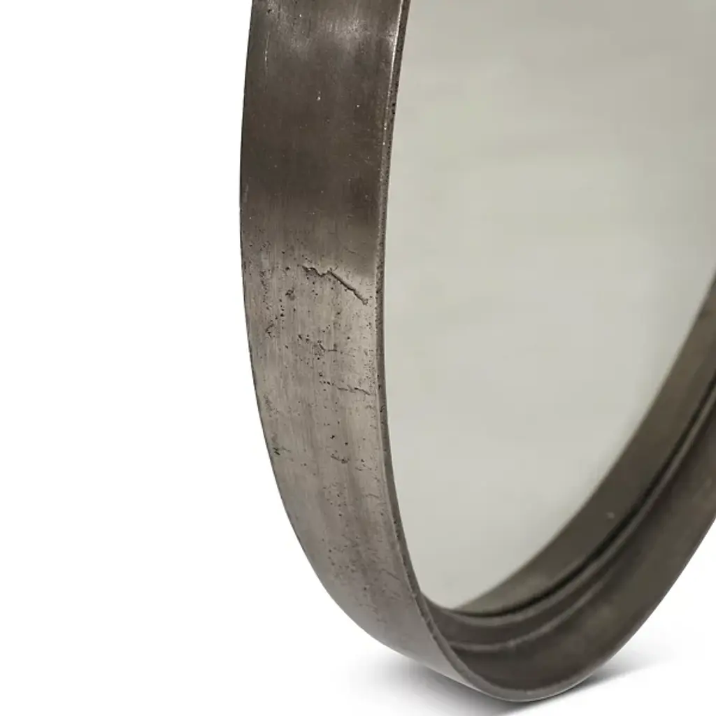 Modern home décor that pairs a simple form with unexpected depth. The Elements Samar Round Mirror by Urbia is a large, round wall mirror with a decorative metal frame that appears relatively slender from the front but, when viewed from the side, reveals a 3-inch depth. Hanging over an entryway console table or living room fireplace, this wall mirror is both an impressive centerpiece and a reflection of your minimalist good taste.