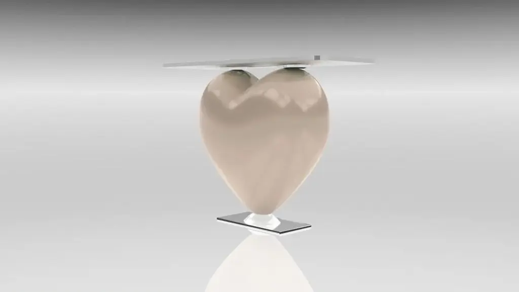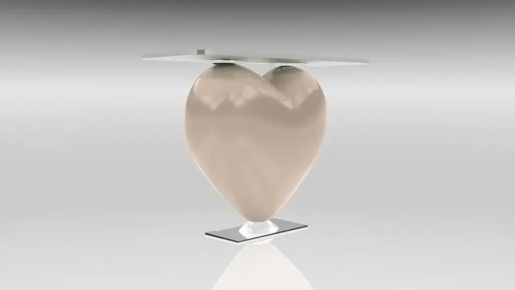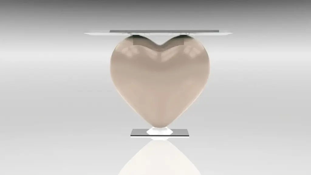 Eje-Design celebrates the universal symbol of love. This sculptural and symbolic creation from the house of Eje-Design, as refined as it is poetic, aspires to a world of beauty, love and originality. Both playful and simple, distinguished and unusual in an interior, it will bring a touch of creation, love and elegance to your interior. Dressed in its deep Light Oyster lacquer developed by the Rolls Royce brand, this side console will captivate you. Limited Series: 489 pieces Designer : Ema Dimensions with the glass top : Height: 71.6cm; Width: 100cm Depth: 38.6cm Materials : This console is made from a block of epoxy resin. In a world where mass production predominates, we have chosen to focus on craftsmanship and quality. Each creation we offer is made to order by our passionate and dedicated employees, thus ensuring careful attention to every detail. For each order, a production time of approximately 3 months is expected. This may seem long, but it is a guarantee of quality. Unlike mass-produced products, our creations require time to be made with the level of care and passion that we claim. As each product is handmade by our artisans, slight variations in rendering may exist between the same product of the same color. The rendering of the photos and illustrations alaso depends on the settings and characteristics of your screen. The actual rendering of the piece will therefore be different in reality. Consequently, the textures, colors, shadows, flashes, brightness and renderings would therefore not be contractual. Signed by Maker,Labeled by Maker,Stamped by Maker,Imprinted by Maker,Labeled with Country of Origin,Numbered