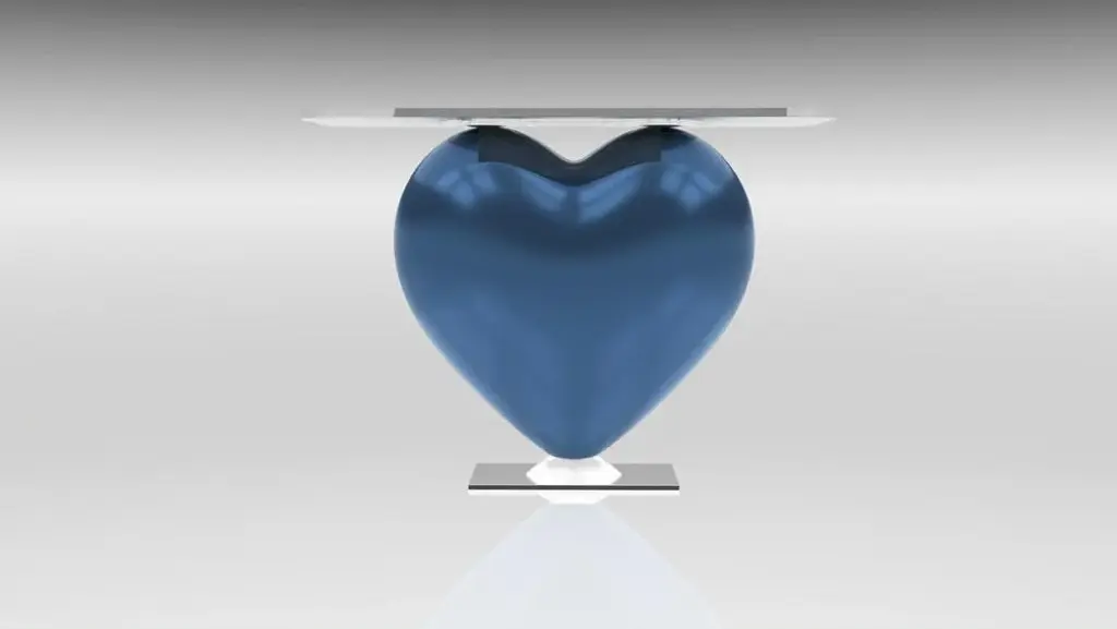 Eje-Design celebrates the universal symbol of love. This sculptural and symbolic creation from the house of Eje-Design, as refined as it is poetic, aspires to a world of beauty, love and originality. Both playful and simple, distinguished and unusual in an interior, it will bring a touch of creation, love and elegance to your interior. Dressed in its deep Lunar Blue lacquer developed by the Rolls Royce brand, this side console will captivate you. Limited Series: 489 pieces Designer : Ema Dimensions with the glass top : Height: 71.6cm; Width: 100cm Depth: 38.6cm Materials : This console is made from a block of epoxy resin. In a world where mass production predominates, we have chosen to focus on craftsmanship and quality. Each creation we offer is made to order by our passionate and dedicated employees, thus ensuring careful attention to every detail. For each order, a production time of approximately 3 months is expected. This may seem long, but it is a guarantee of quality. Unlike mass-produced products, our creations require time to be made with the level of care and passion that we claim. As each product is handmade by our artisans, slight variations in rendering may exist between the same product of the same color. The rendering of the photos and illustrations alaso depends on the settings and characteristics of your screen. The actual rendering of the piece will therefore be different in reality. Consequently, the textures, colors, shadows, flashes, brightness and renderings would therefore not be contractual. Signed by Maker,Labeled by Maker,Stamped by Maker,Imprinted by Maker,Labeled with Country of Origin,Numbered