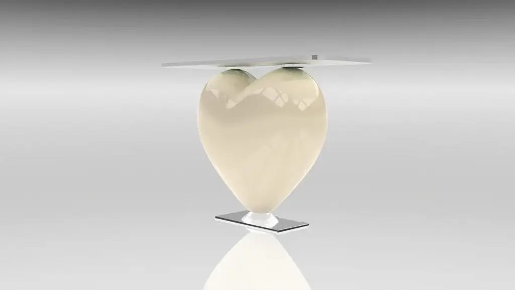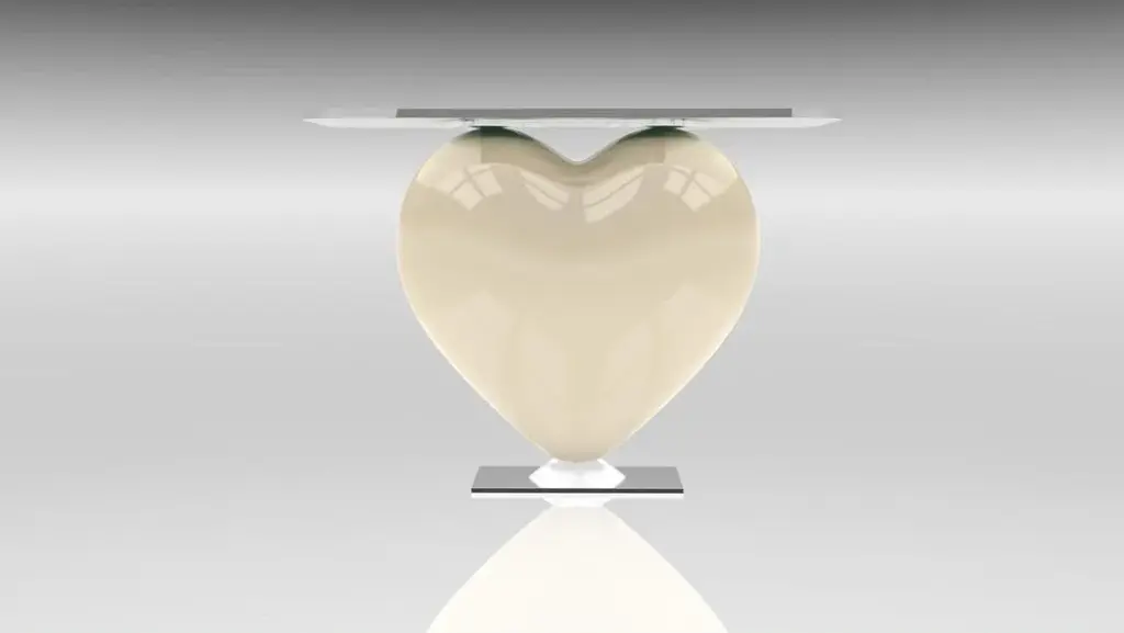 Eje-Design celebrates the universal symbol of love. This sculptural and symbolic creation from the house of Eje-Design, as refined as it is poetic, aspires to a world of beauty, love and originality. Both playful and simple, distinguished and unusual in an interior, it will bring a touch of creation, love and elegance to your interior. Dressed in its deep Porcelaine Skin lacquer developed by the Rolls Royce brand, this side console will captivate you. Limited Series: 489 pieces Designer : Ema Dimensions with the glass top : Height: 71.6cm; Width: 100cm Depth: 38.6cm Materials : This console is made from a block of epoxy resin. In a world where mass production predominates, we have chosen to focus on craftsmanship and quality. Each creation we offer is made to order by our passionate and dedicated employees, thus ensuring careful attention to every detail. For each order, a production time of approximately 3 months is expected. This may seem long, but it is a guarantee of quality. Unlike mass-produced products, our creations require time to be made with the level of care and passion that we claim. As each product is handmade by our artisans, slight variations in rendering may exist between the same product of the same color. The rendering of the photos and illustrations alaso depends on the settings and characteristics of your screen. The actual rendering of the piece will therefore be different in reality. Consequently, the textures, colors, shadows, flashes, brightness and renderings would therefore not be contractual. Signed by Maker,Labeled by Maker,Stamped by Maker,Imprinted by Maker,Labeled with Country of Origin,Numbered
