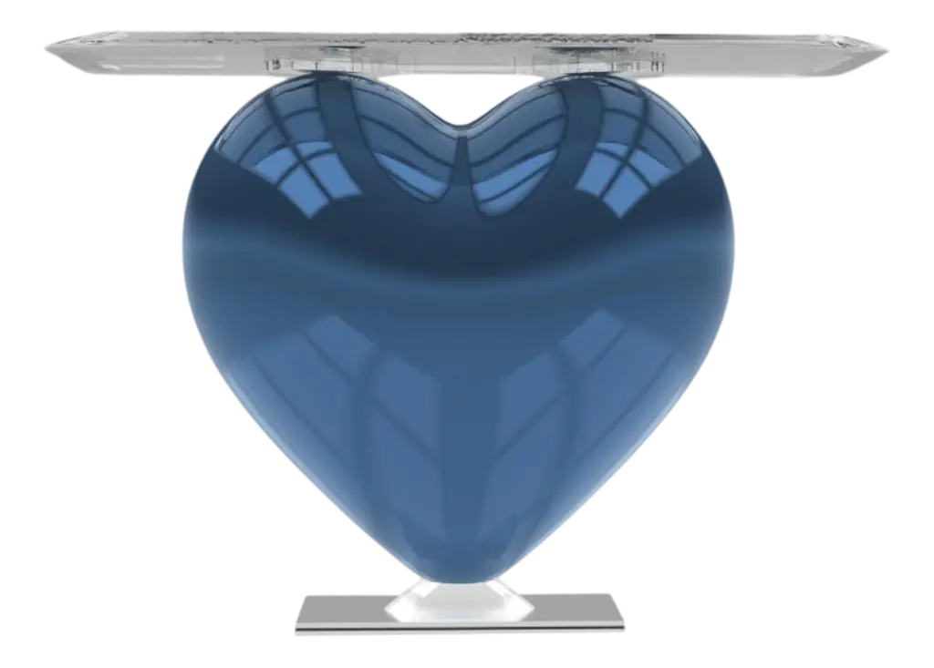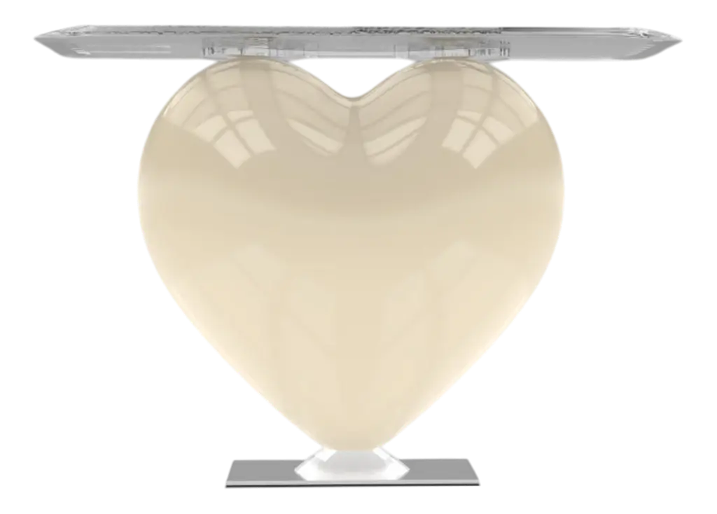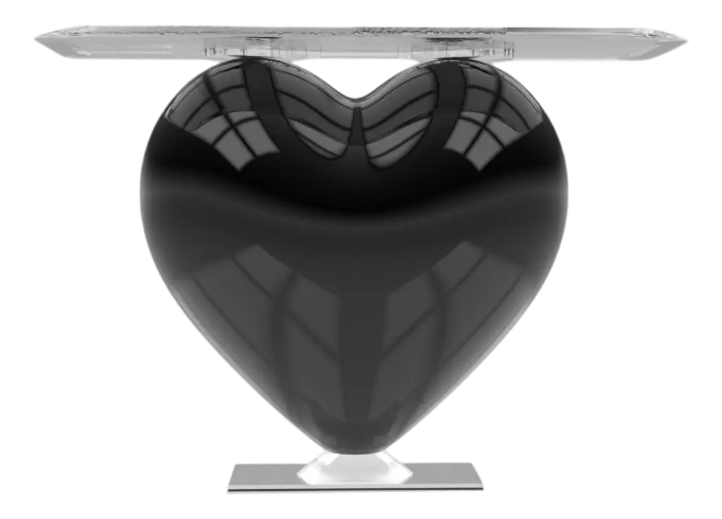 Eje-Design celebrates the universal symbol of love. This sculptural and symbolic creation from the house of Eje-Design, as refined as it is poetic, aspires to a world of beauty, love and originality. Both playful and simple, distinguished and unusual in an interior, it will bring a touch of creation, love and elegance to your interior. Dressed in its deep Umbrian Red lacquer developed by the Rolls Royce brand, this side console will captivate you. Limited Series: 489 pieces Designer : Ema Dimensions with the glass top : Height: 71.6cm; Width: 100cm Depth: 38.6cm Materials : This console is made from a block of epoxy resin. In a world where mass production predominates, we have chosen to focus on craftsmanship and quality. Each creation we offer is made to order by our passionate and dedicated employees, thus ensuring careful attention to every detail. For each order, a production time of approximately 3 months is expected. This may seem long, but it is a guarantee of quality. Unlike mass-produced products, our creations require time to be made with the level of care and passion that we claim. As each product is handmade by our artisans, slight variations in rendering may exist between the same product of the same color. The rendering of the photos and illustrations alaso depends on the settings and characteristics of your screen. The actual rendering of the piece will therefore be different in reality. Consequently, the textures, colors, shadows, flashes, brightness and renderings would therefore not be contractual. Signed by Maker,Labeled by Maker,Stamped by Maker,Imprinted by Maker,Labeled with Country of Origin,Numbered