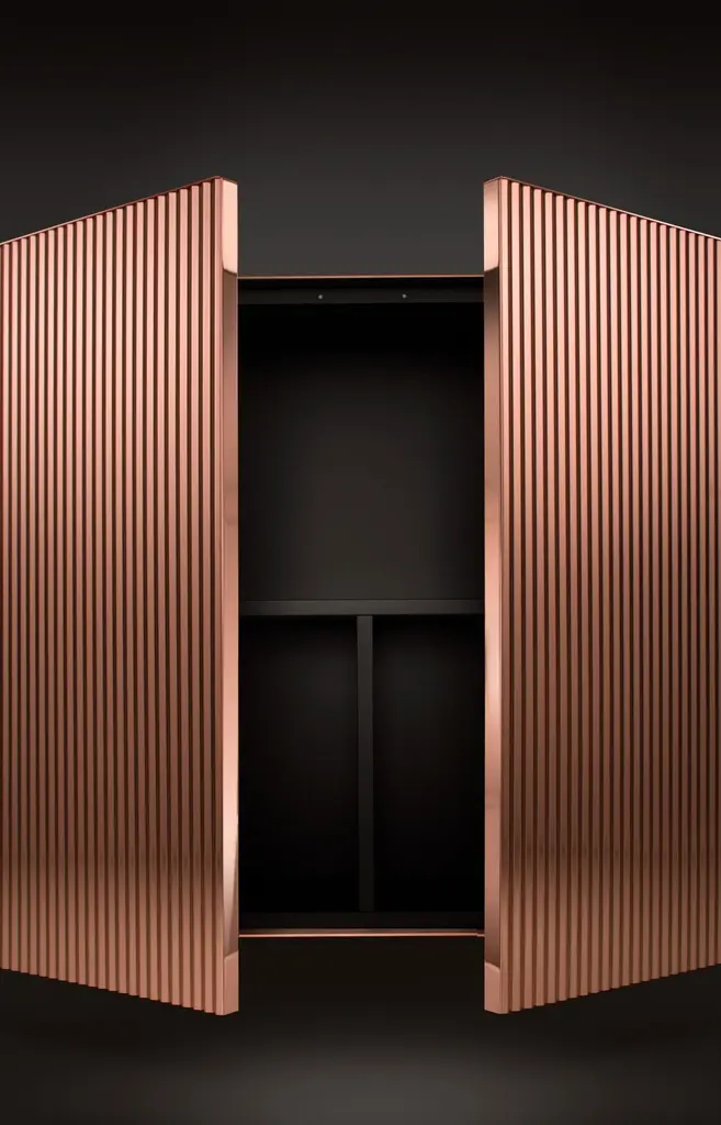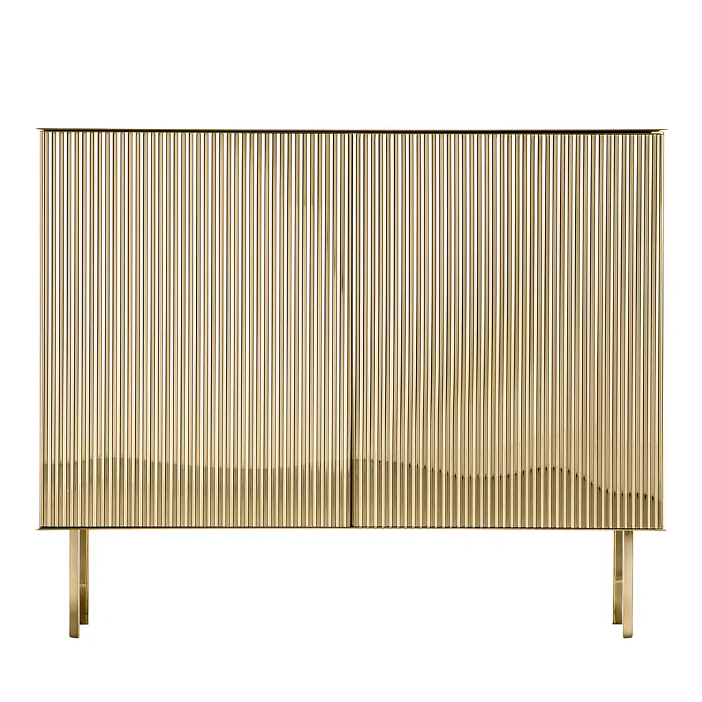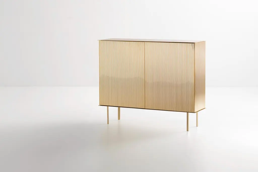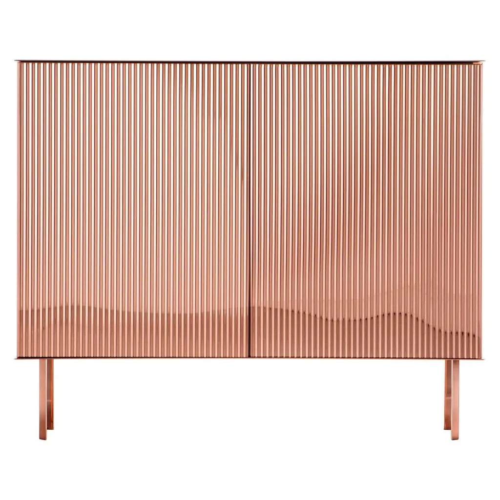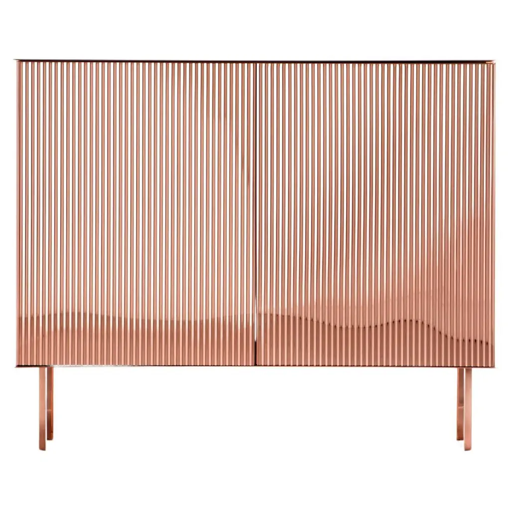Elizabeth Console Table by De CastelliDimensions: W 122 x D 37 x H 100 cmMaterials: Polished Stainless Steel, WoodBrass and Copper versions are also available. Please contact us for any request.Like a ballerina on her toes, Elizabeth gracefully unfurls her luminous dress, as if made of pleated fabric. The characteristic folds add movement to the metal sheet along the surface of the cabinet, transforming each reflection into light. In an interplay of airiness and tension, elasticity and rigour, the metal vibrates with the rhythm of its pleats. Available in steel, brass or copper, Elizabeth gives shape to a new way of imagining unambiguously feminine metal furniture.DE CASTELLI“HARD COUTURE”Faithful to its decision to reinstate the special role of metal in design and experimentation, De Castelli infuses artisan ideas and workmanship into industrial processes, leading to entirely original results. The encounter with design inspires an approach to materials founded upon respect for their potential, be it hidden or obvious, which emerges slowly in a collection of pieces that, despite being part of a series, remain unique.Unique not only for the hand that has created them, but also for the singular cultural path that focuses on the aesthetic (and not just practical) value of the primordial material with which De Castelli shapes living spaces.A BESPOKE APPROACHEach object, even in the repetition of form, is a creative act in and of itself, one that incorporates a heritage of constantly-evolving expertise and research. The equation that relegates ‘cold’ metals to the margins of furnishing projects is thus overturned, bringing iron, brass and copper, in their infinite variations and finishes, to the centre of an entirely renewed stage, allowing them to finally shine with their own light.SUSTAINABILITYDe Castelli has always been committed to making the entire production cycle increasingly sustainable, aware that metal, the material with which its business identifies itself, is precious and must be treated with care, without waste.PEOPLE FIRSTThe wide spaces of the De Castelli headquarters in Crocetta del Montello (TV) allow those who work to enjoy environments where order, cleanliness and safety are always maintained and guaranteed. An attitude of attention and respect for people that has led to the shared ethical code.