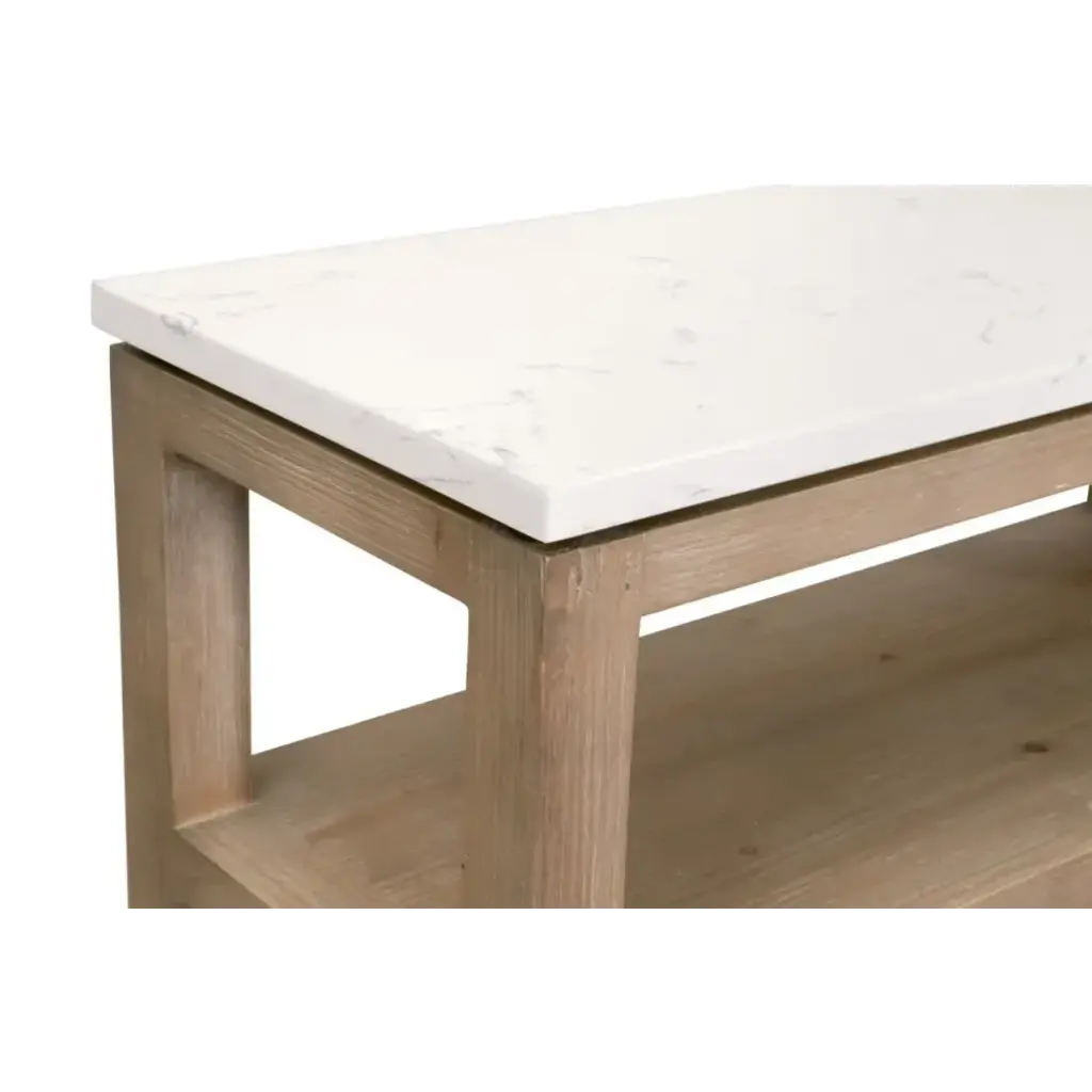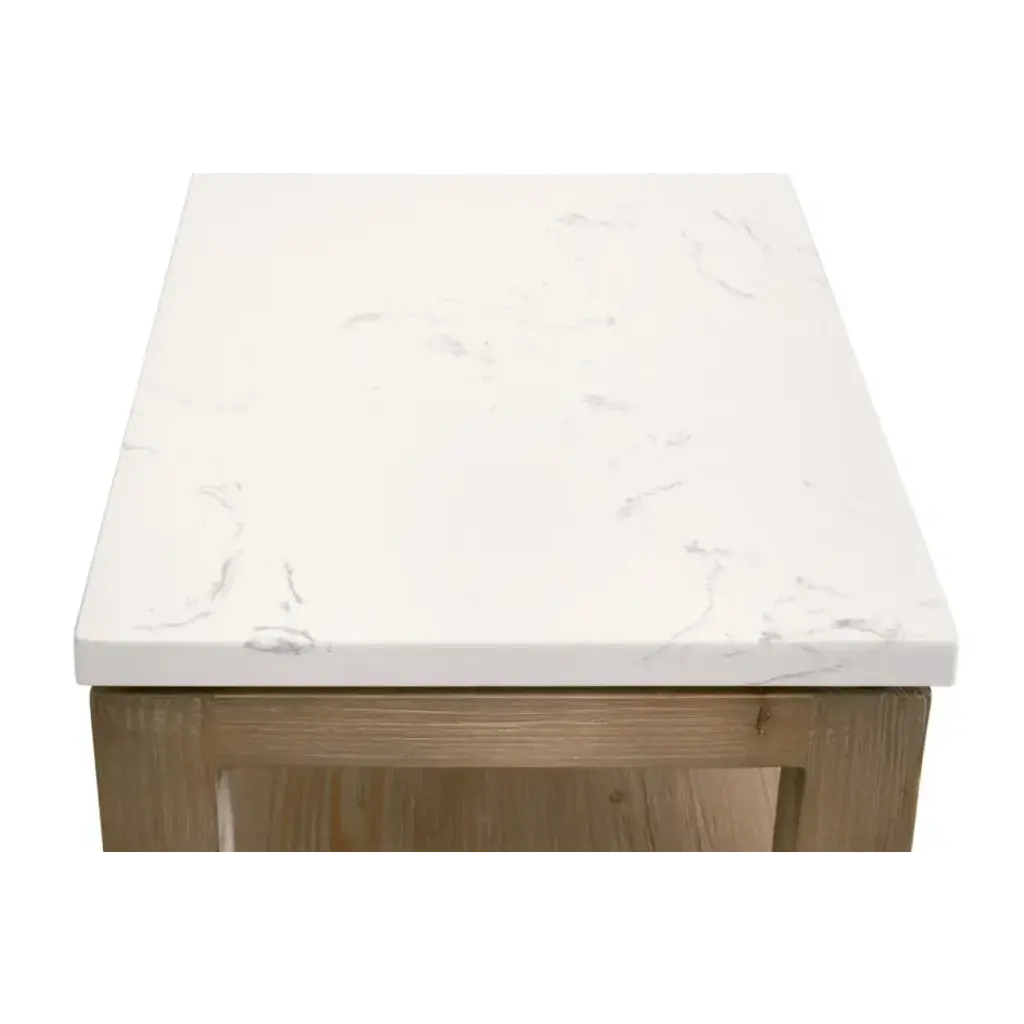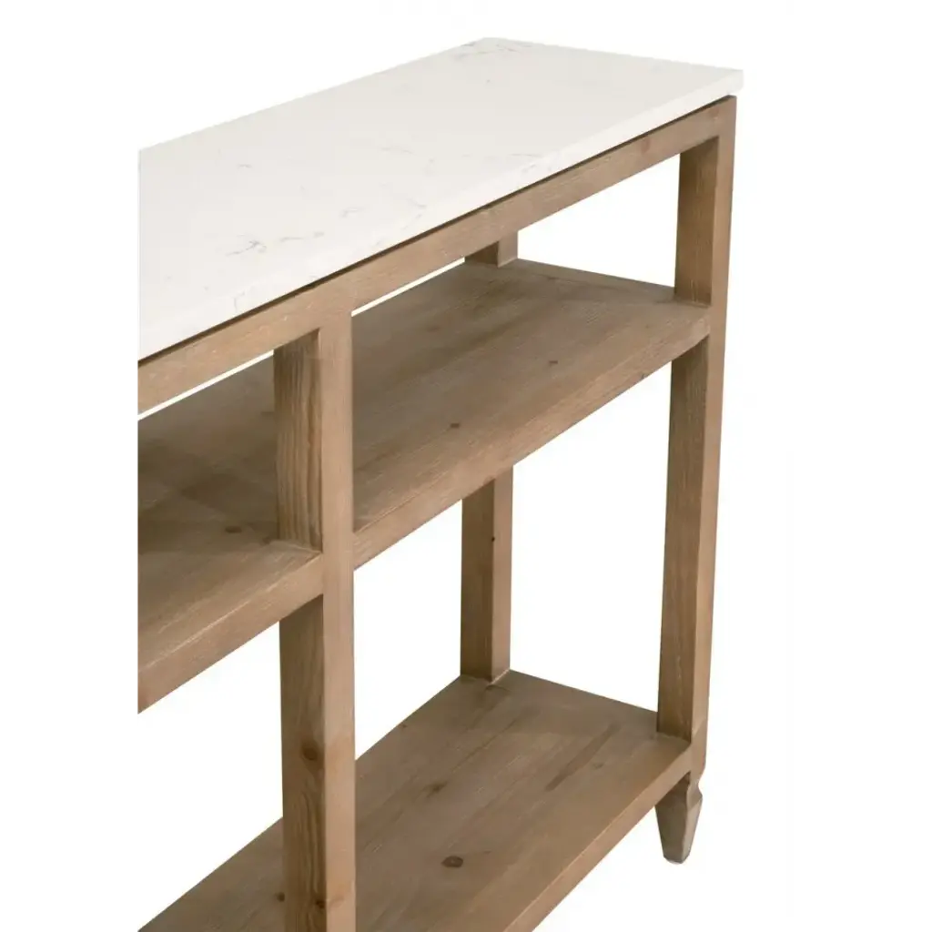 Emerie Narrow Console Table Smoke Gray Pine, White Quartz
