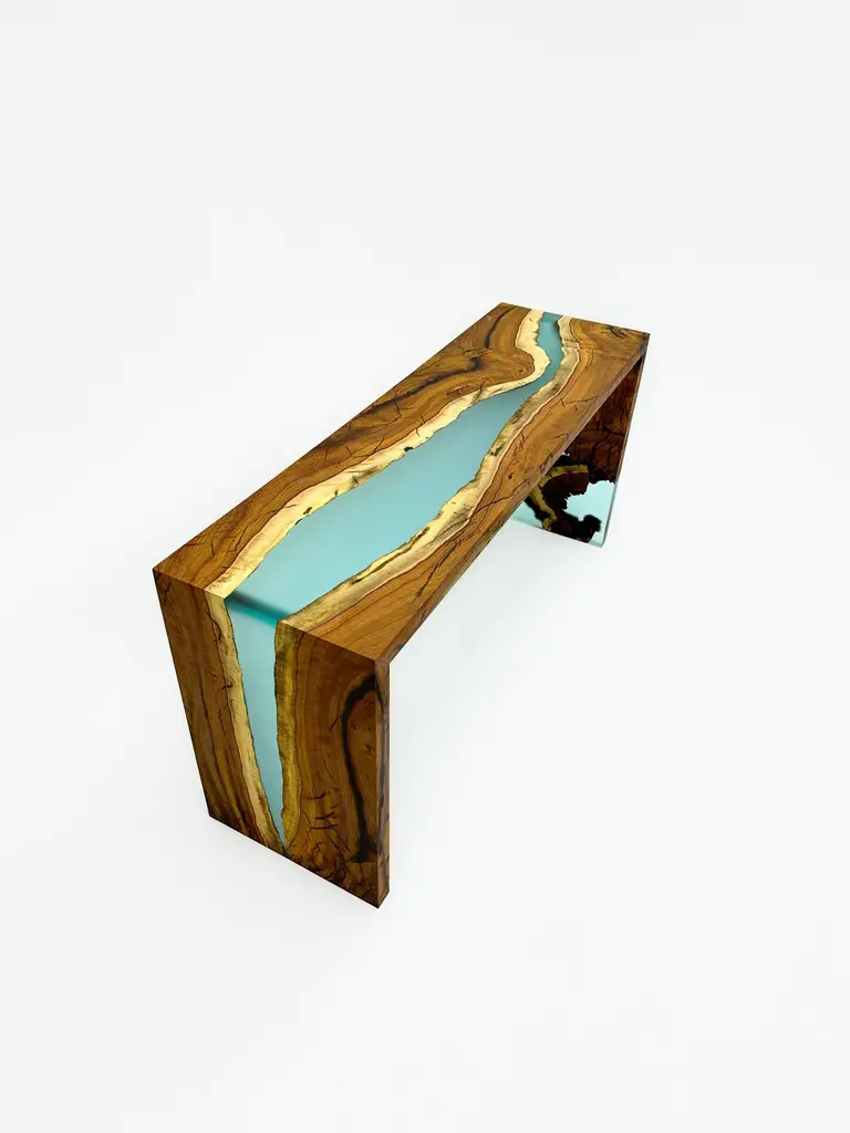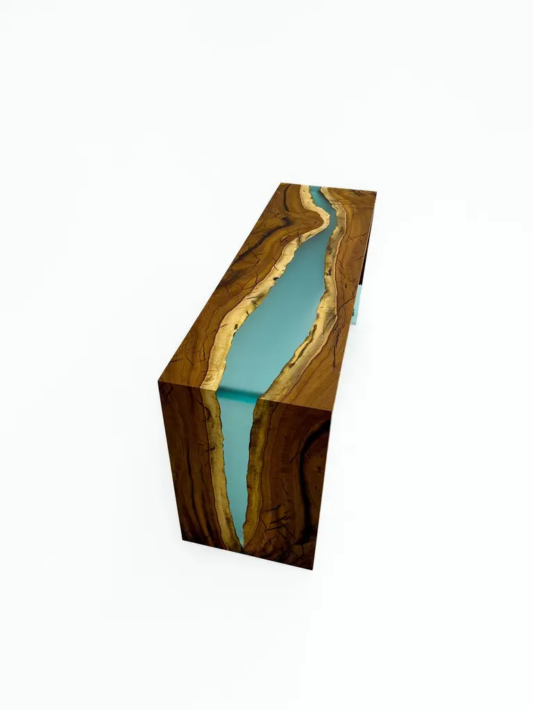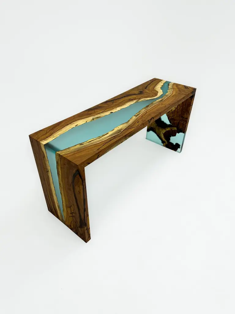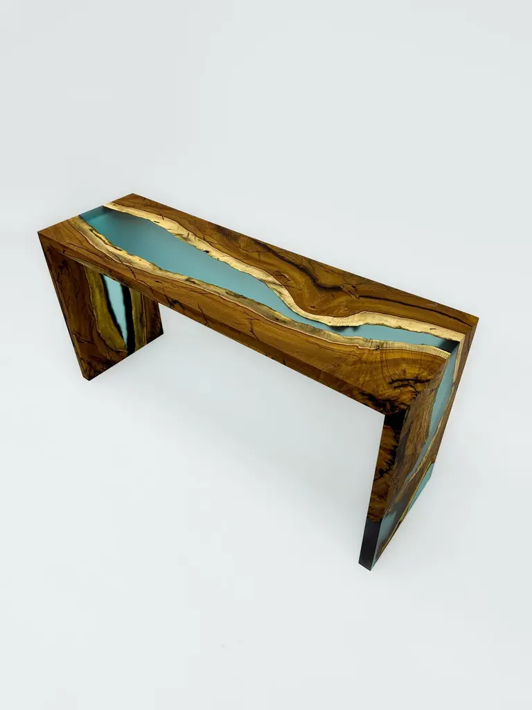 Epoxy Resin Waterfall Custom Wooden Console Table