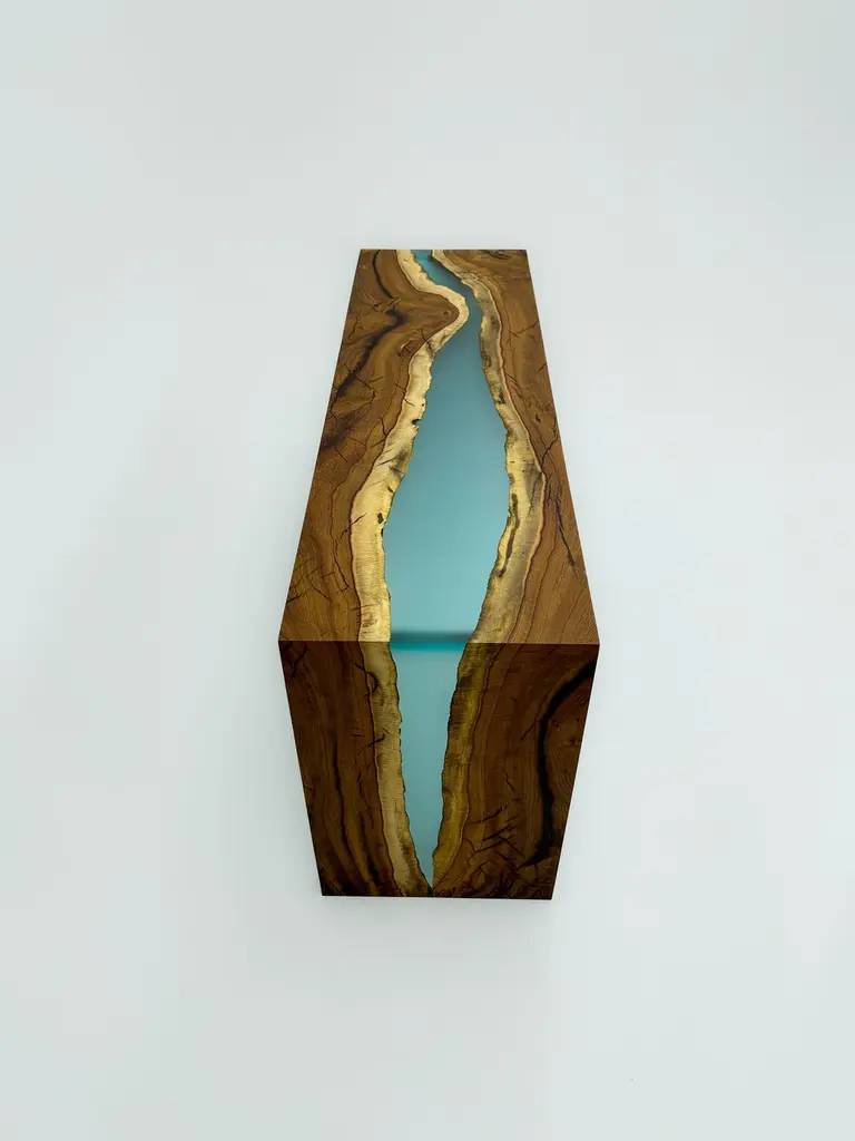 Waterfall Hackberry Epoxy Console TablePresenting our Epoxy Waterfall ConsoleTable – a true sample of craftsmanship and elegance. This exceptional piece of furniture is designed to be more than just a coffee table; it's a statement of refined taste and contemporary style.With waterfall console table's modern design and appeal, it's the perfect piece for your home, combining functionality with an aesthetic.This console table is made of walnut wood. And it can be customized according to your taste in terms of kind of wood, epoxy colour, finishes etc..