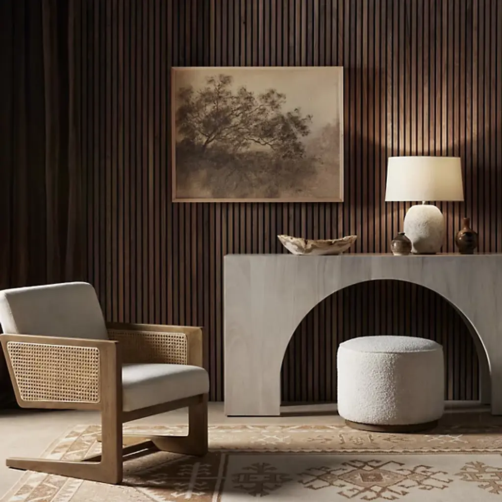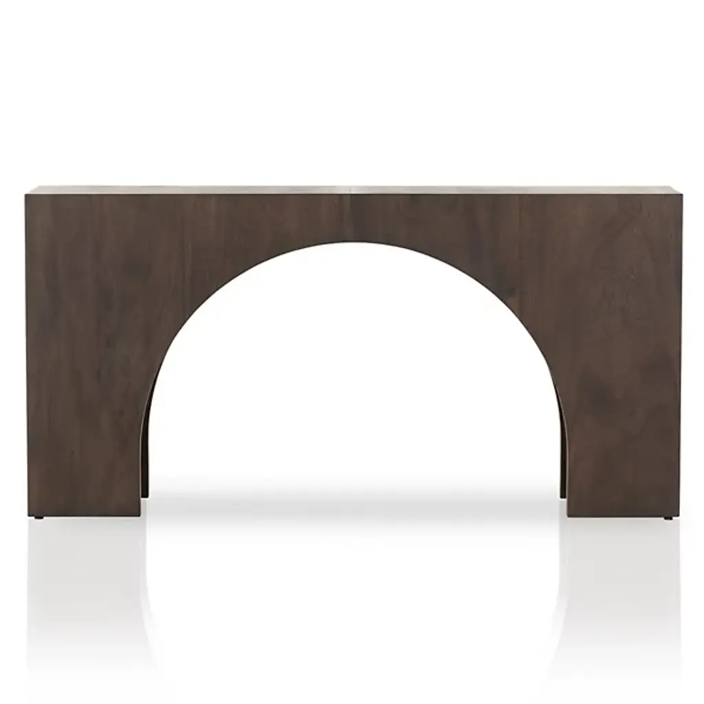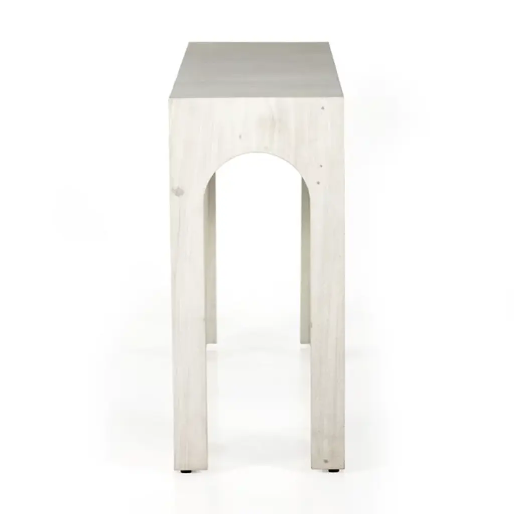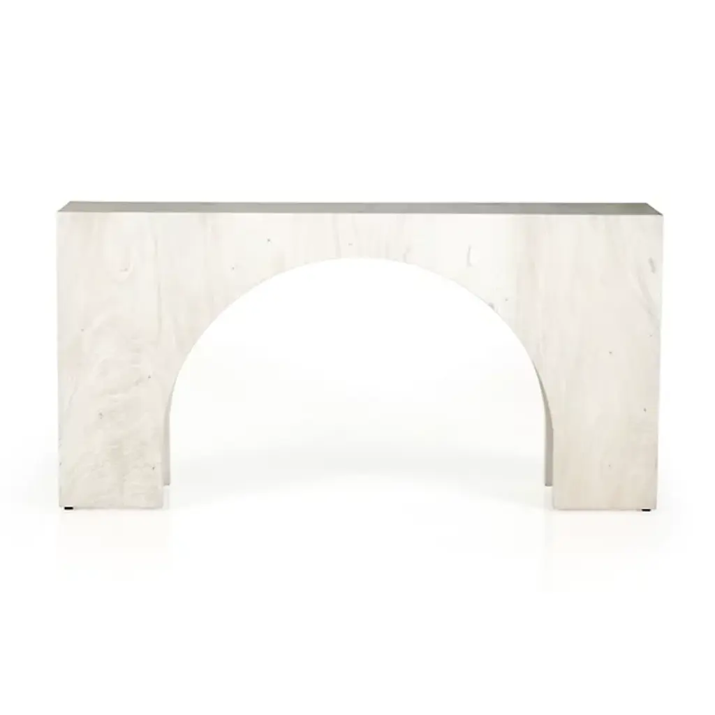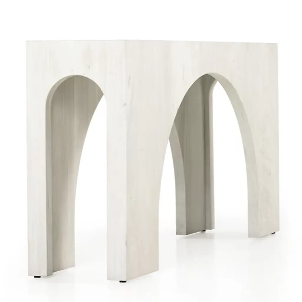 Give your decorative arrangement an exquisite appearance with the Fausto Console Table by Four Hands. This table is composed of solid marble. Fausto’s block corner design gives it a streamlined look. Your table is defined by elegant arches that create silhouettes that draw your gaze. Make the Fausto Console Table a decorative mainstay as a standalone statement piece or compliment your home décor by displaying your favorite vase or potted plant.