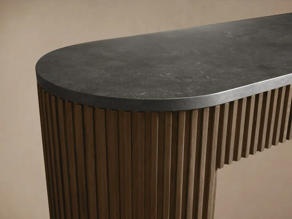 Our Finnley Collection showcases a stunning mixed-material design, inviting elevated style into your home. Hand-finished pine from Finland or oak wood is luxuriously complemented by stone tops, accented by brass plinth bases and reeded oak detailing. The result is an eclectic-yet-chic collection that adds a touch of nature’s alchemy to any living space.