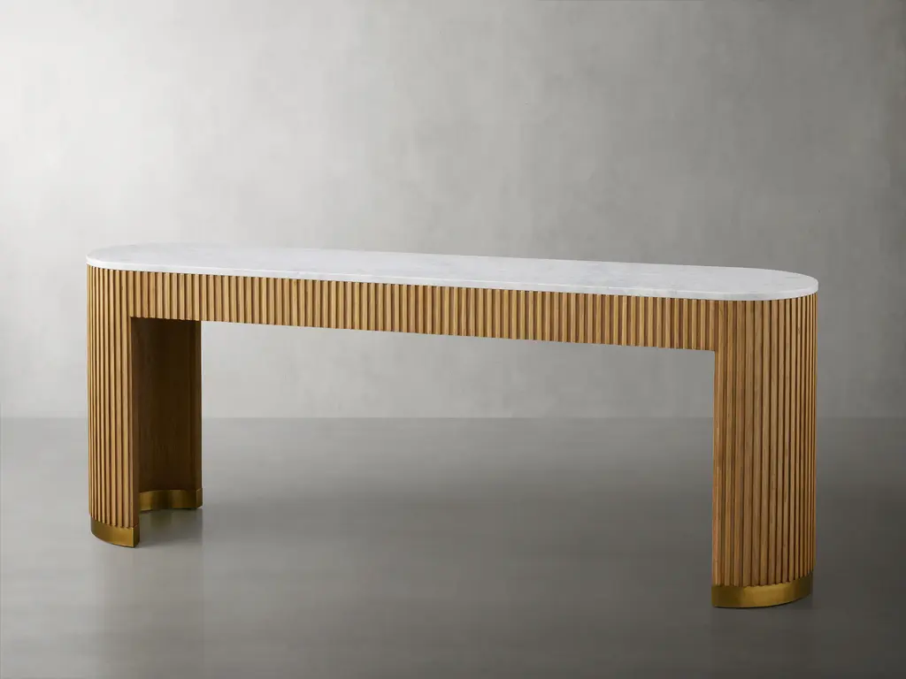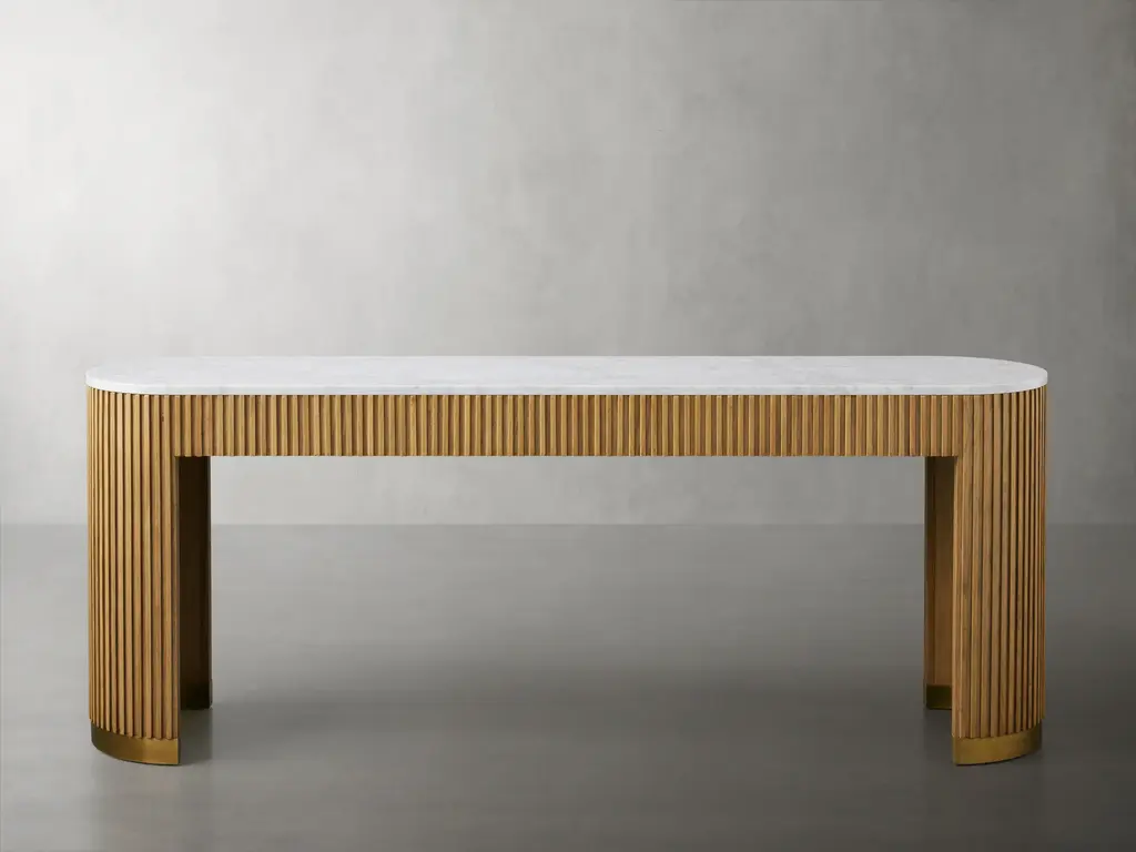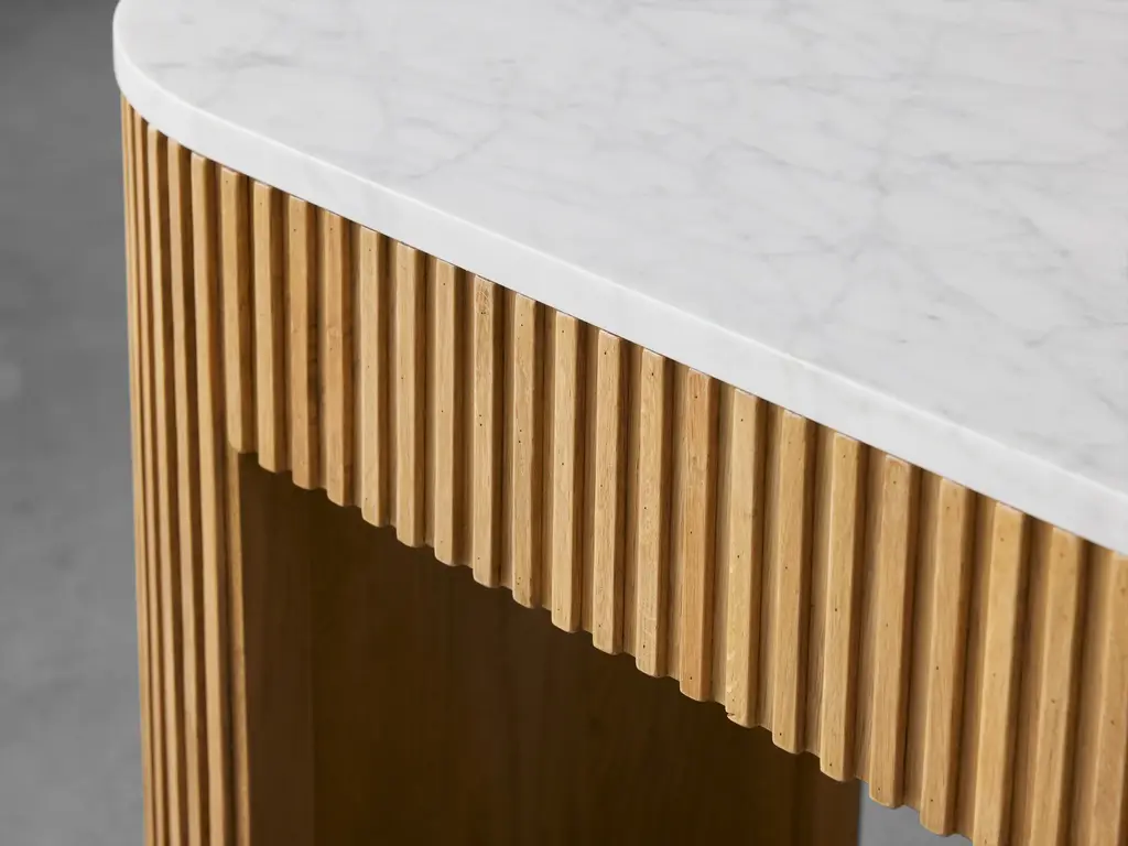 Our Finnley Collection showcases a stunning mixed-material design, inviting elevated style into your home. Hand-finished pine from Finland or white oak wood is luxuriously complemented by stone tops, accented by brass plinth bases and reeded oak detailing. The result is an eclectic-yet-chic collection that adds a touch of nature’s alchemy to any living space.