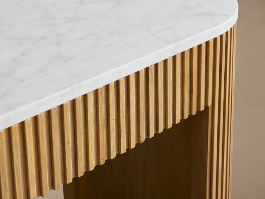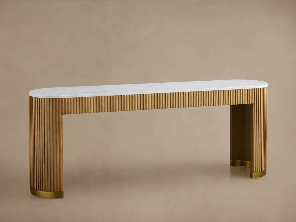 Our Finnley Collection showcases a stunning mixed-material design, inviting elevated style into your home. Hand-finished pine from Finland or oak wood is luxuriously complemented by stone tops, accented by brass plinth bases and reeded oak detailing. The result is an eclectic-yet-chic collection that adds a touch of nature’s alchemy to any living space.