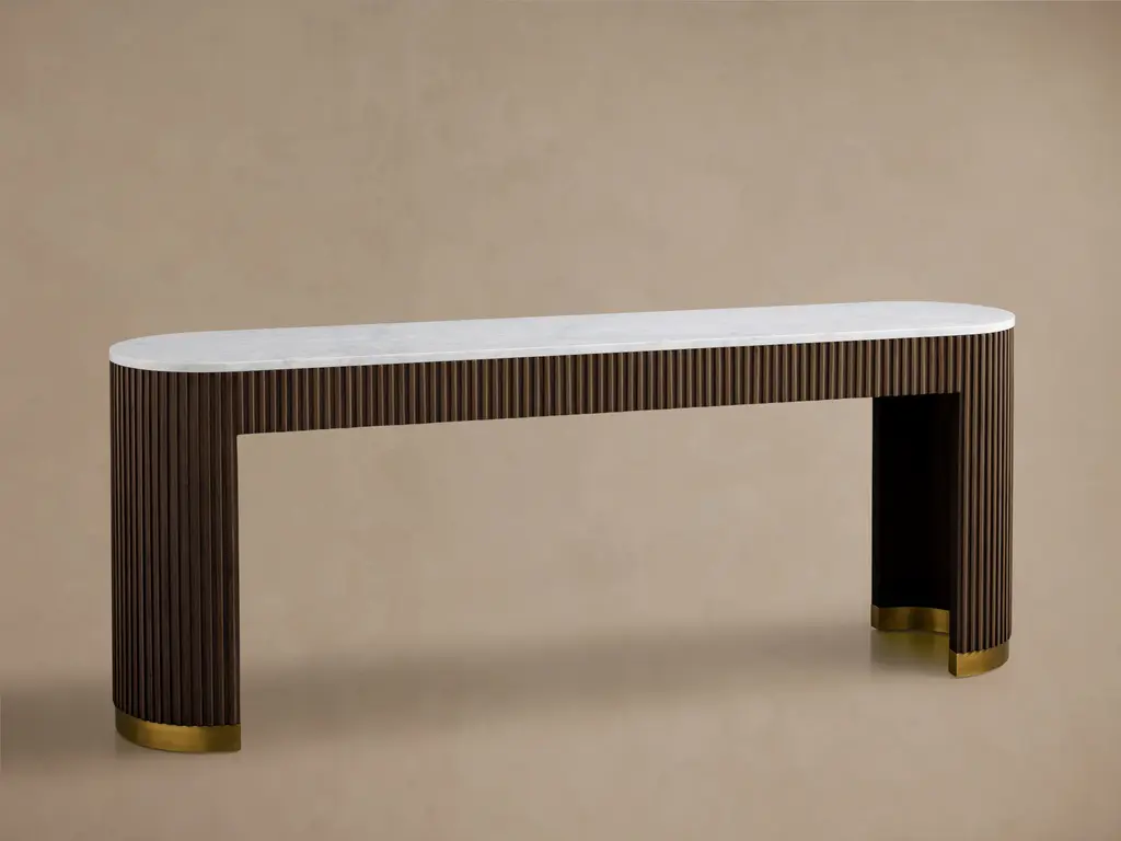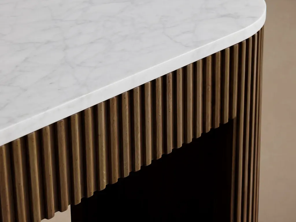 Our Finnley Collection showcases a stunning mixed-material design, inviting elevated style into your home. Hand-finished pine from Finland or oak wood is luxuriously complemented by stone tops, accented by brass plinth bases and reeded oak detailing. The result is an eclectic-yet-chic collection that adds a touch of nature’s alchemy to any living space.