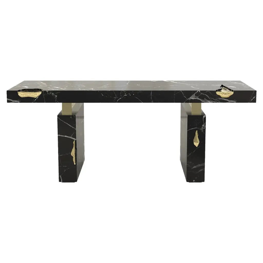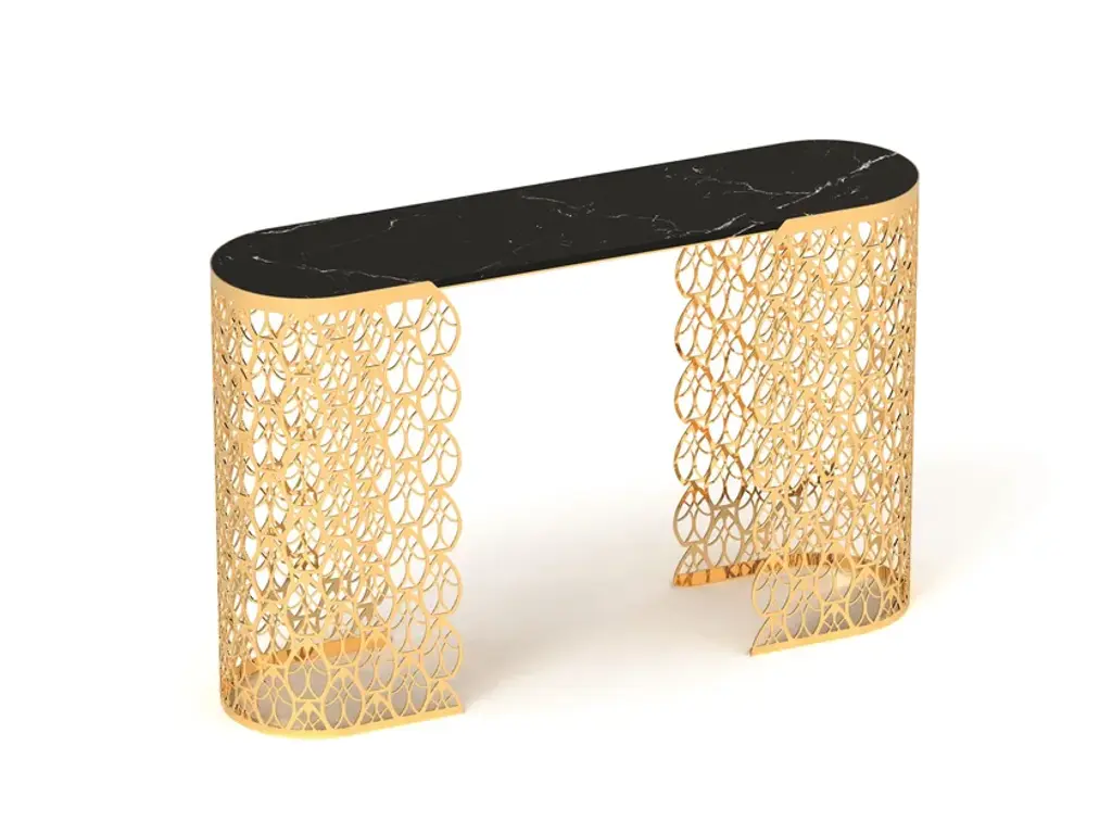 Functionality and elegance meet in Fitzgerald console. The contained depth and unique style of Arabesque make this console the ideal solution to furnish an entrance or a hallway, without renouncing a home furnishing of indisputable identity. The preciousness of marble table top and perforated metal legs is enhanced by a very modern and essential design.