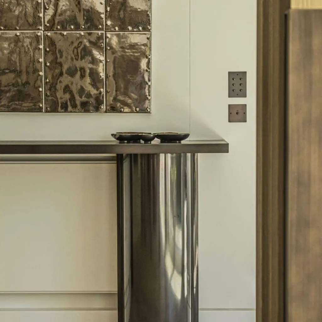 Fly console by LK EditionDimensions: 220 x 35 x H 88 cm Materials: Black patinated bronze and lava stone. It is with the sense of detail and requirement, this research of the exception by the selection of noble materials and his culture of the French know-how, that LK has built up its principles and set up his skills. LK will meet your expectations and your requirements in residential, hotel, trade, yachts ... And custom-made furniture.LK, is a discrete French high-end decoration company working on projects throughout the world for well-to-do clients and prestigious brands. In September 2019, they are launching their first collection of furniture for the MAISON&OBJET exhibition. The pieces exhibited are a selection from models produced over the last ten years that reveal a quest for something exclusive and natural, signed by interior designer Pierre-Alexis Gilbert, in collusion with his wife and partner Katia Le Vaillant.?