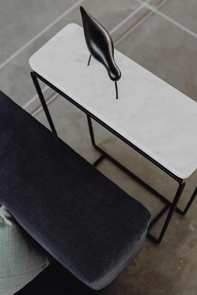 Form-C M White Console Table by Un’commonDesigned by Małgorzata Korycka.Dimensions: D 20 x W 80 x H 73 cm.Materials: Steel and Carrara marble.Available in different marble options. Please contact us.FORM-C is the only console in the BASIC collection. The top is slightly raised, and the rounded corners perfectly correspond to the rounded shape of the frame. All of these details combined are the reason this unique console has such a delicate and modern form.Our Polish workshop designs and hand-makes furniture from marble and steel. Our furniture should not only be well-designed – it should be a feast for the senses. Nothing can produce this effect quite as good as marble.It is a beautiful, refined, natural material used for centuries in architecture, art, and everyday life. There are many different stone quarries, offering different types and colors of marble. However, because it is a natural material formed in a very complex process, it is virtually impossible to extract two identical pieces of stone. In our opinion, in a world ruled by plastic and mass production, this thrill of surprise is a bit of genuine luxury, reserved only for natural materials and their enthusiasts.Thanks to the physical properties of stone and precise workmanship, Un’common furniture is built to last. Over time, a natural patina may form on the surface, adding extra charm to your beautiful and refined furniture, which – if treated well – will reward you every day. Nothing can beat the taste of coffee when you drink it at a marble table.
