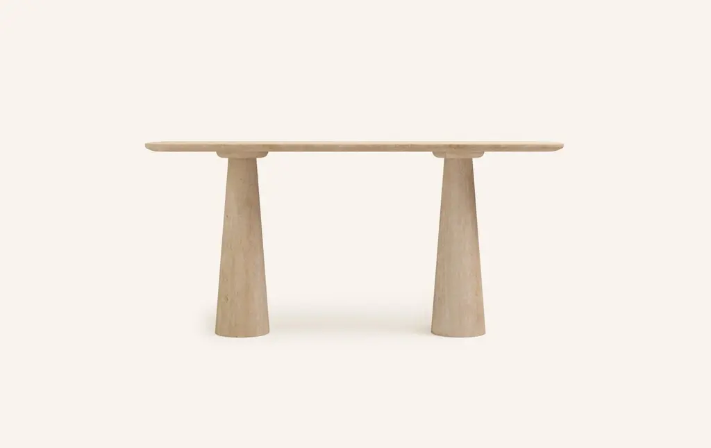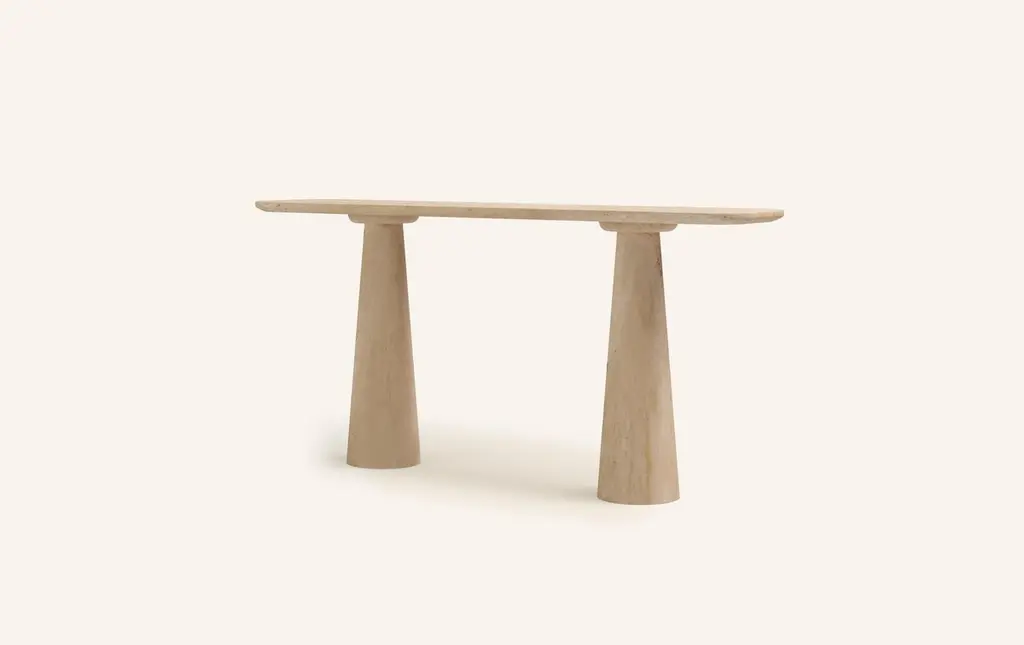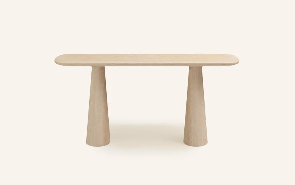 Form(la) Cono Console Table 60”l X 15”w X 33”h Travertino Crema Vc