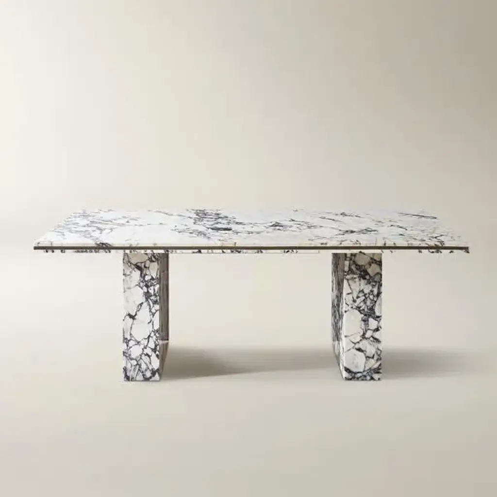 Form(la) Cubo Console Table 50”l X 17”w X 36”h Calacatta Viola & Rosso Marble