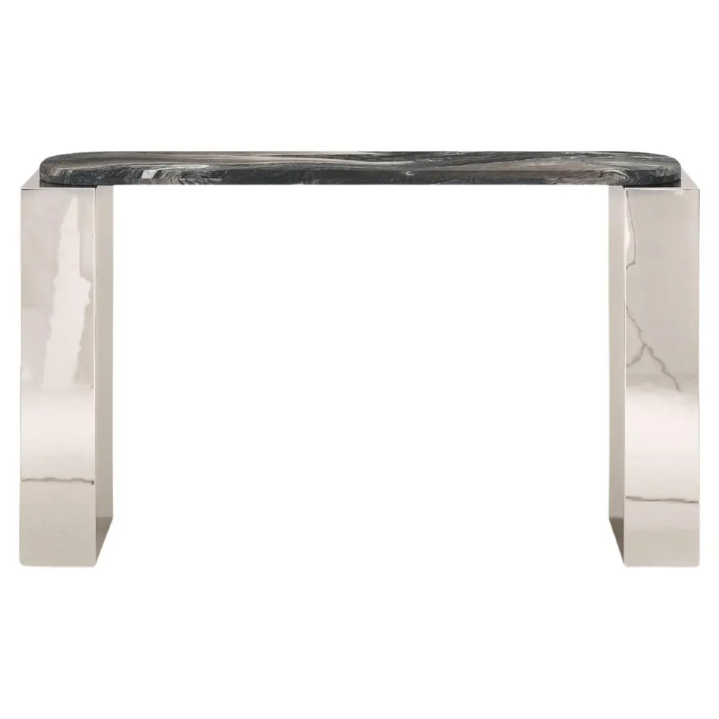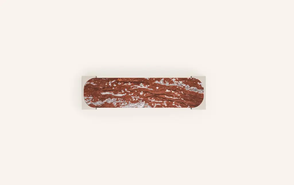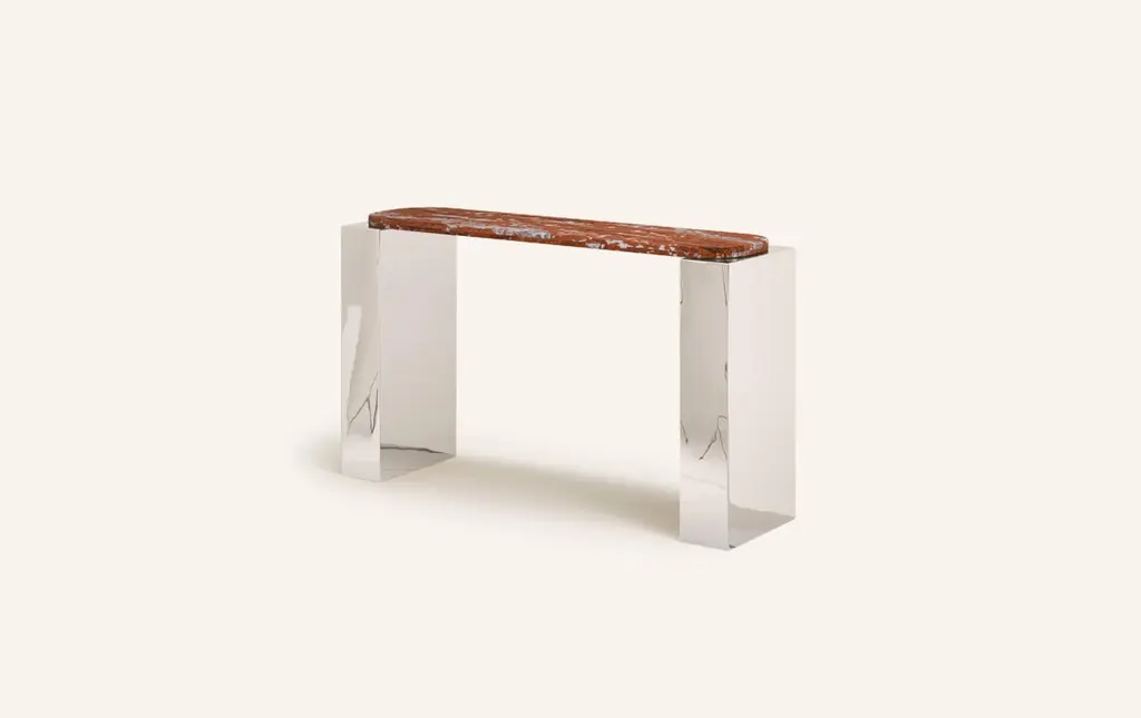 Form(la) Cubo Console Table 62”l X 17”w X 36”h Rosso Francia Marble & Chrome