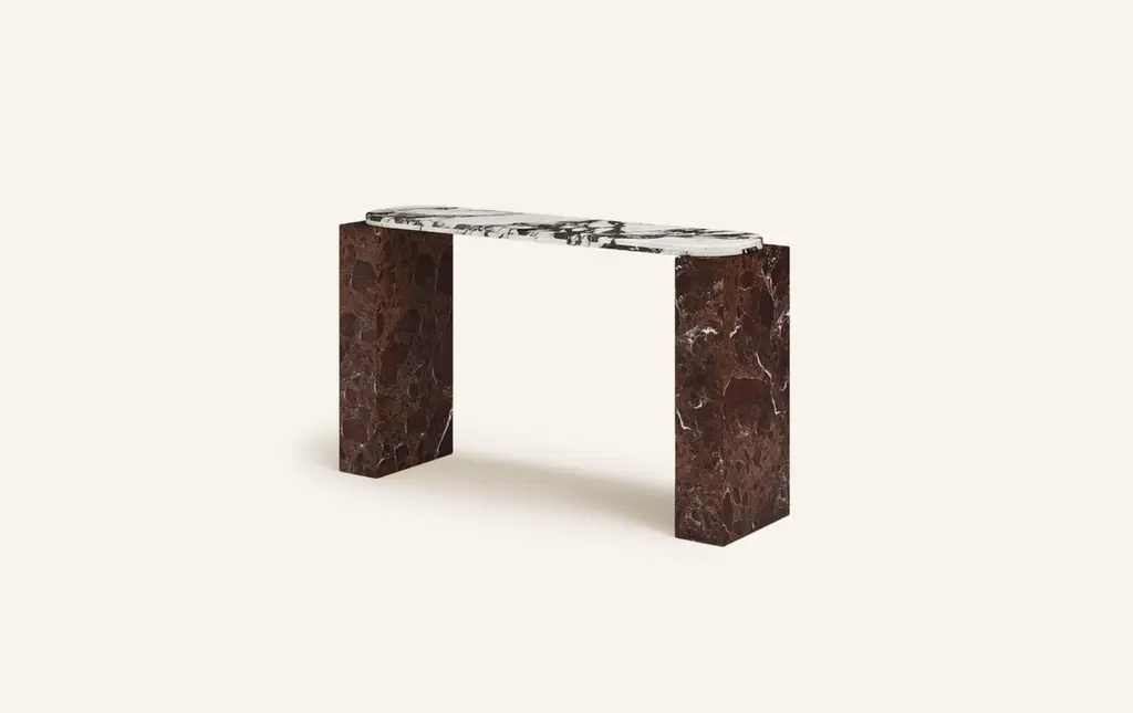 Form(la) Cubo Console Table 74”l X 17”w X 36”h Calacatta Viola & Rosso Marble